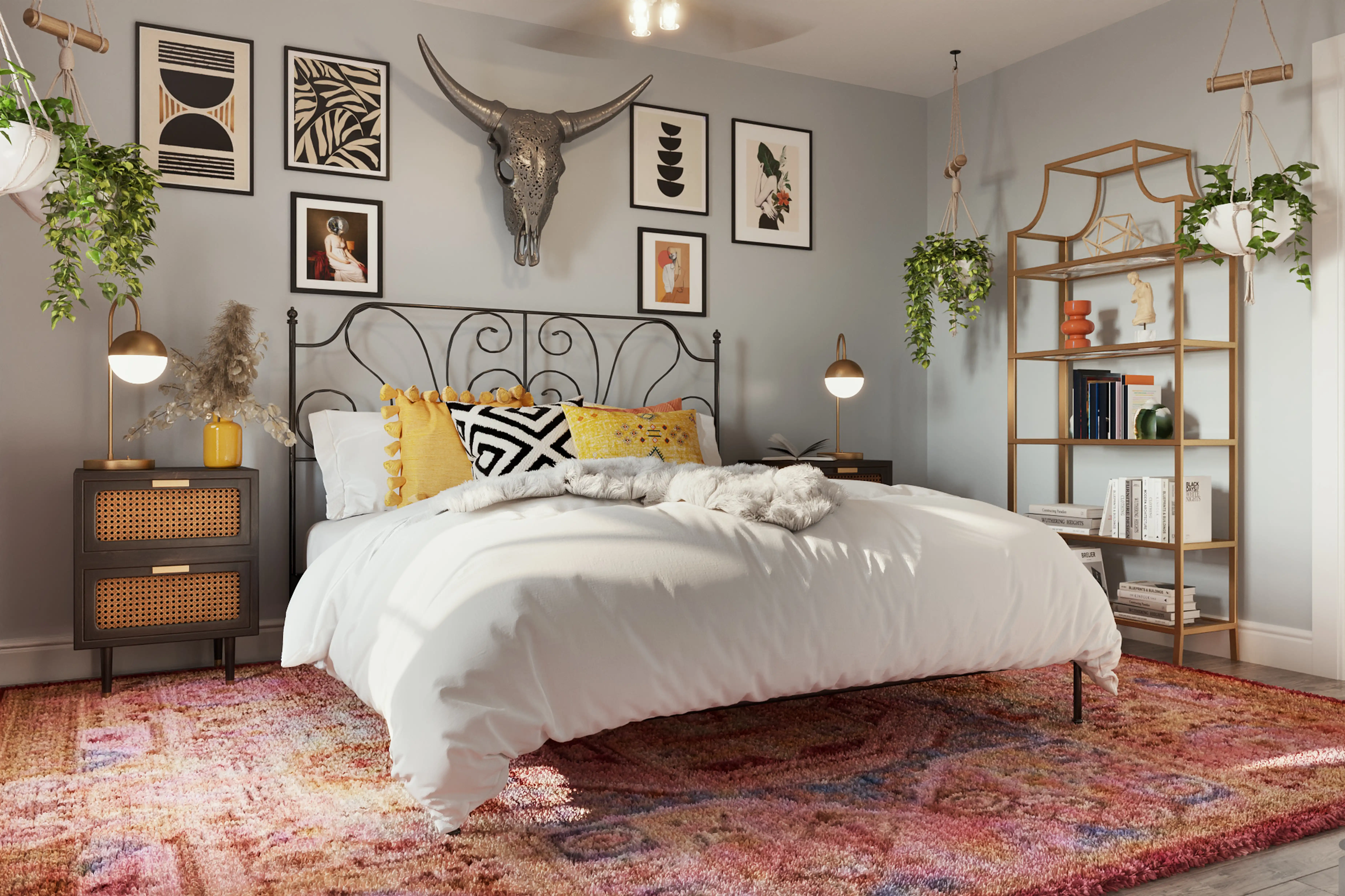 For this room, Leah selected nightstands, bookcases, and standing shelves from Wayfair. Discover Furniture design inspiration on Havenly.