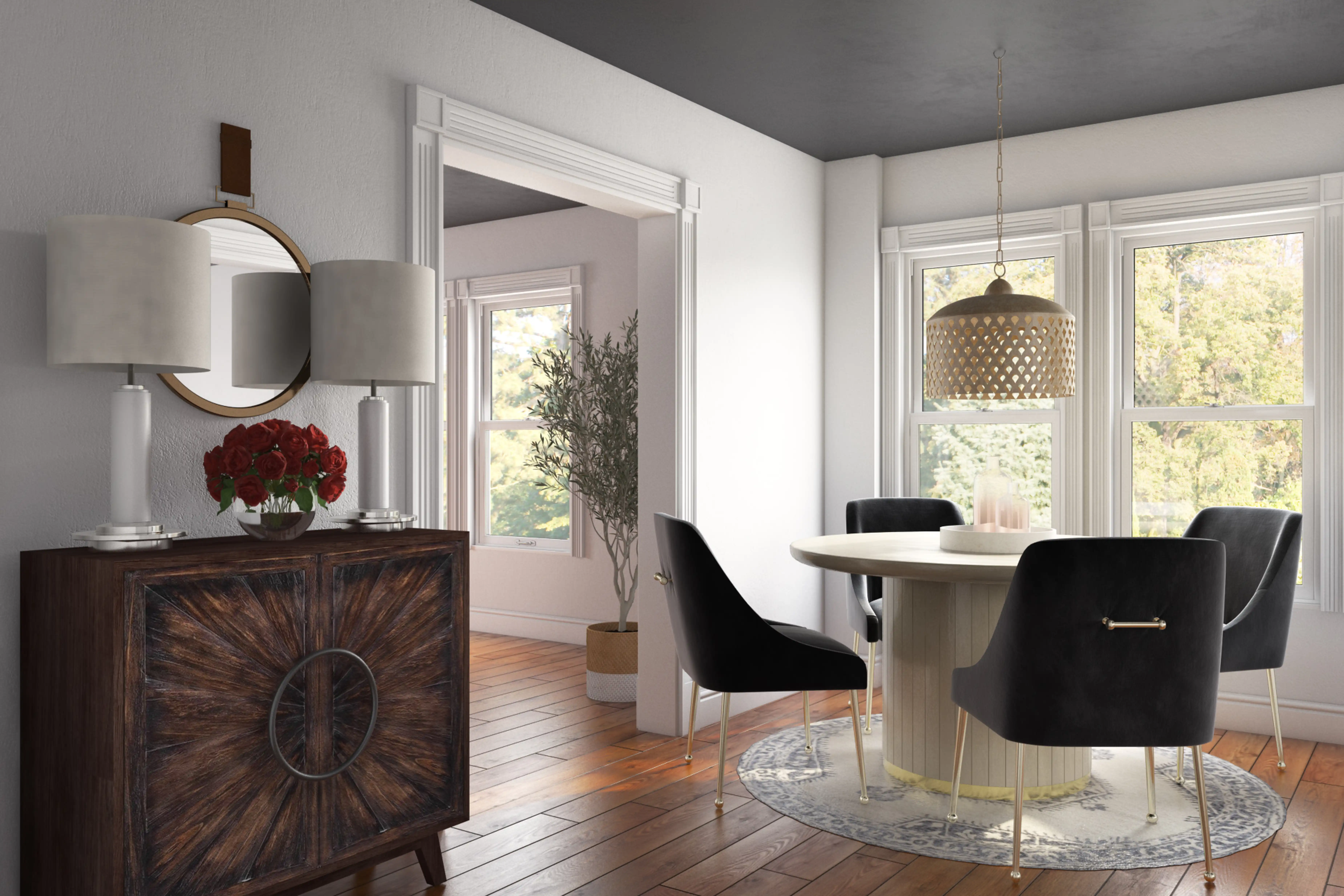 To brighten the design, modern ceiling light fixtures and lamps were added to the room. Discover Lighting design inspiration on Havenly.