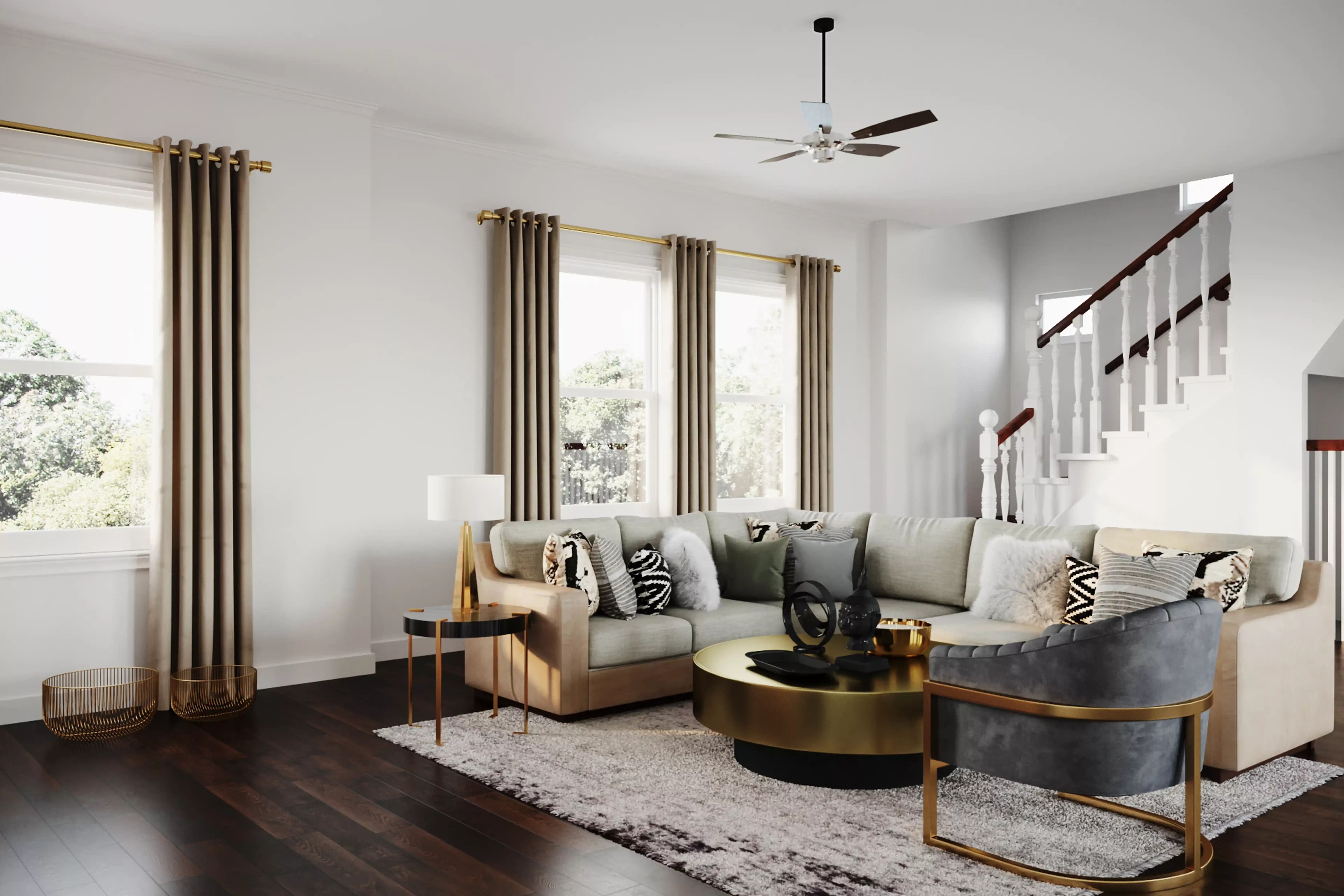To brighten the design, Modern lamps and ceiling light fixtures were added to the room. Discover Lighting design inspiration on Havenly.