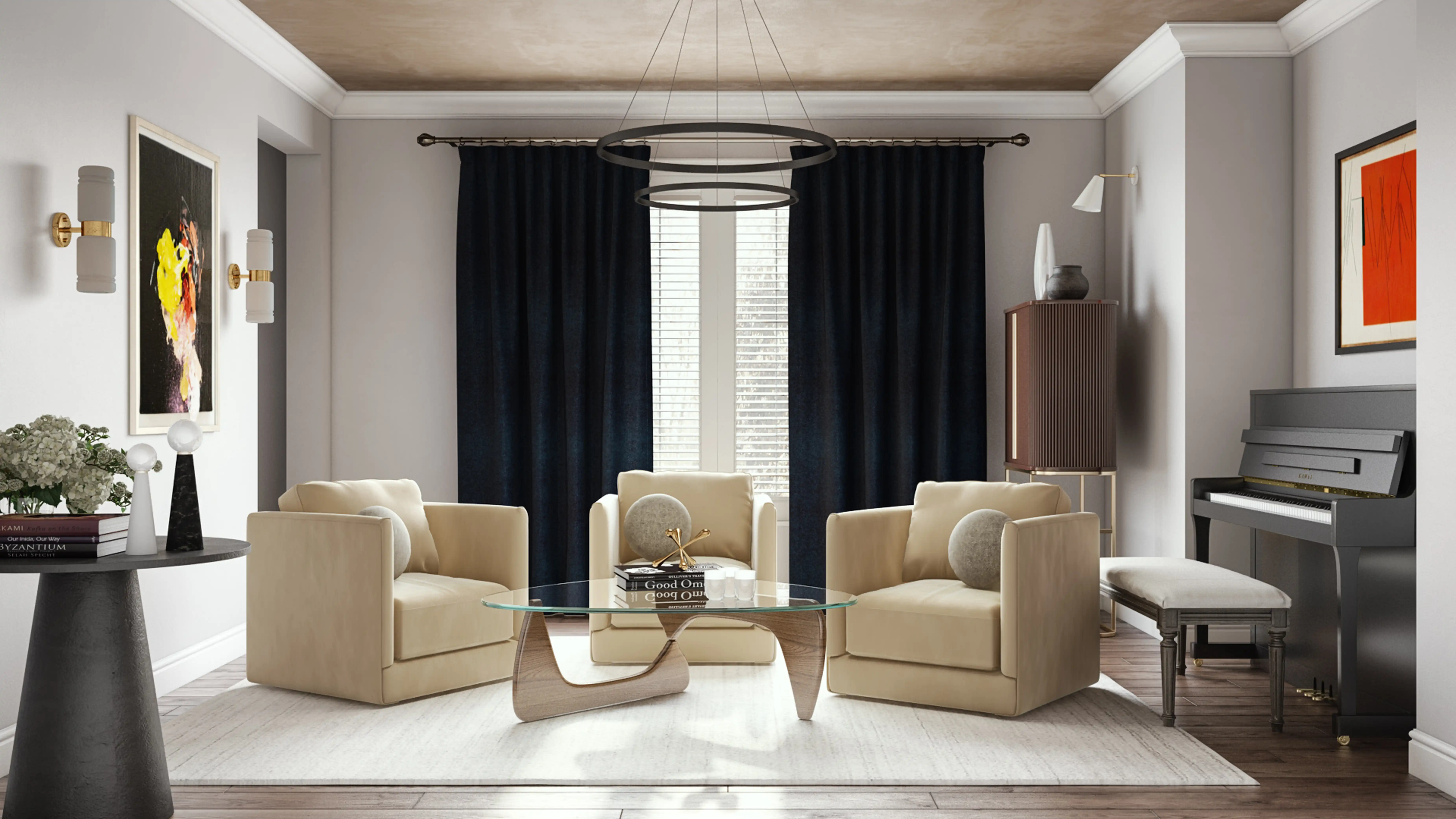 For this Living Room, Dawn selected arm chairs, recliners, sleeper chairs, and coffee tables from RH Modern and Kathy Kuo Home. Discover Furniture design inspiration on Havenly.