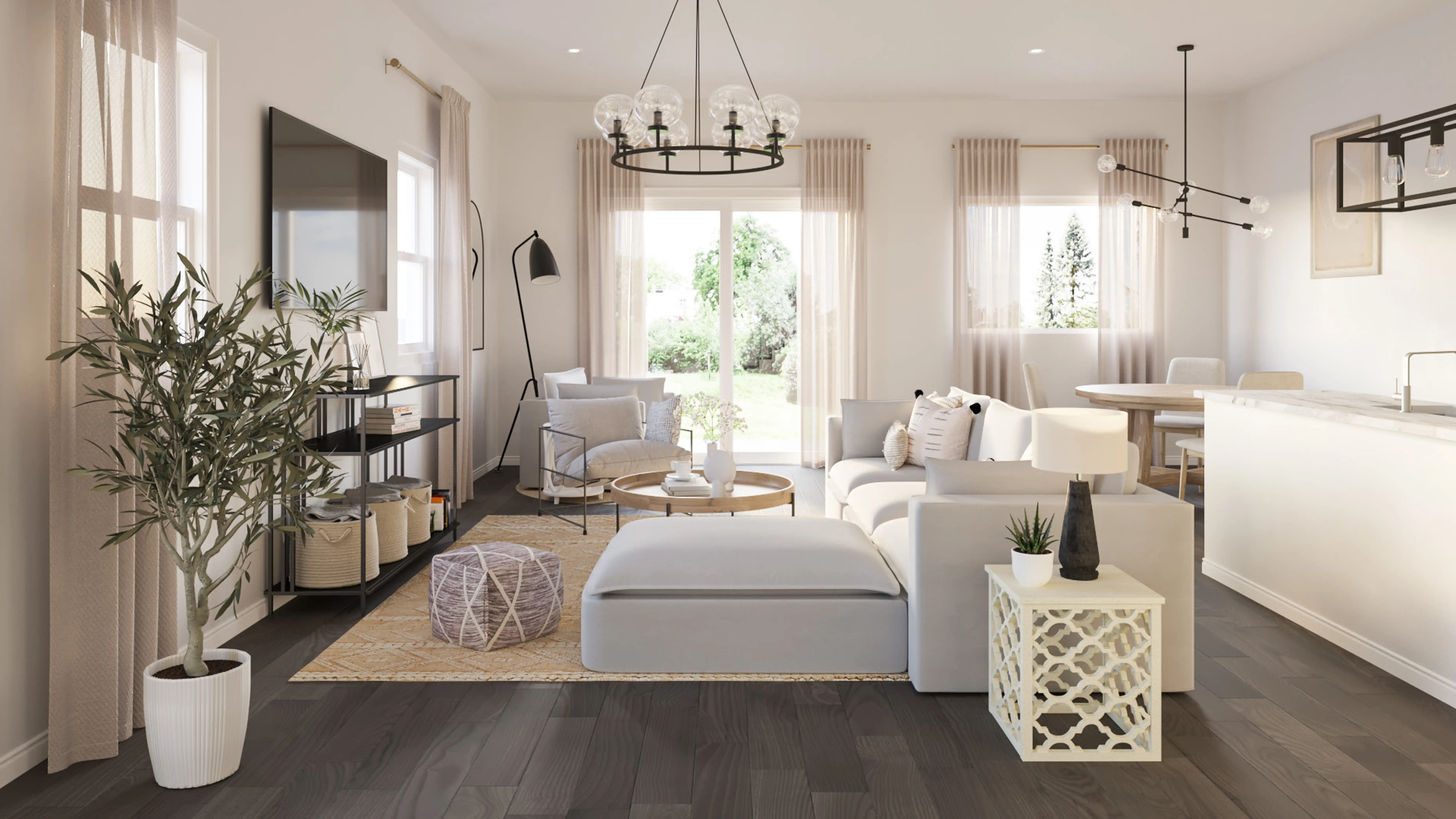 To brighten the design, Contemporary lamps and chandeliers were added to the room. Discover Lighting design inspiration on Havenly.