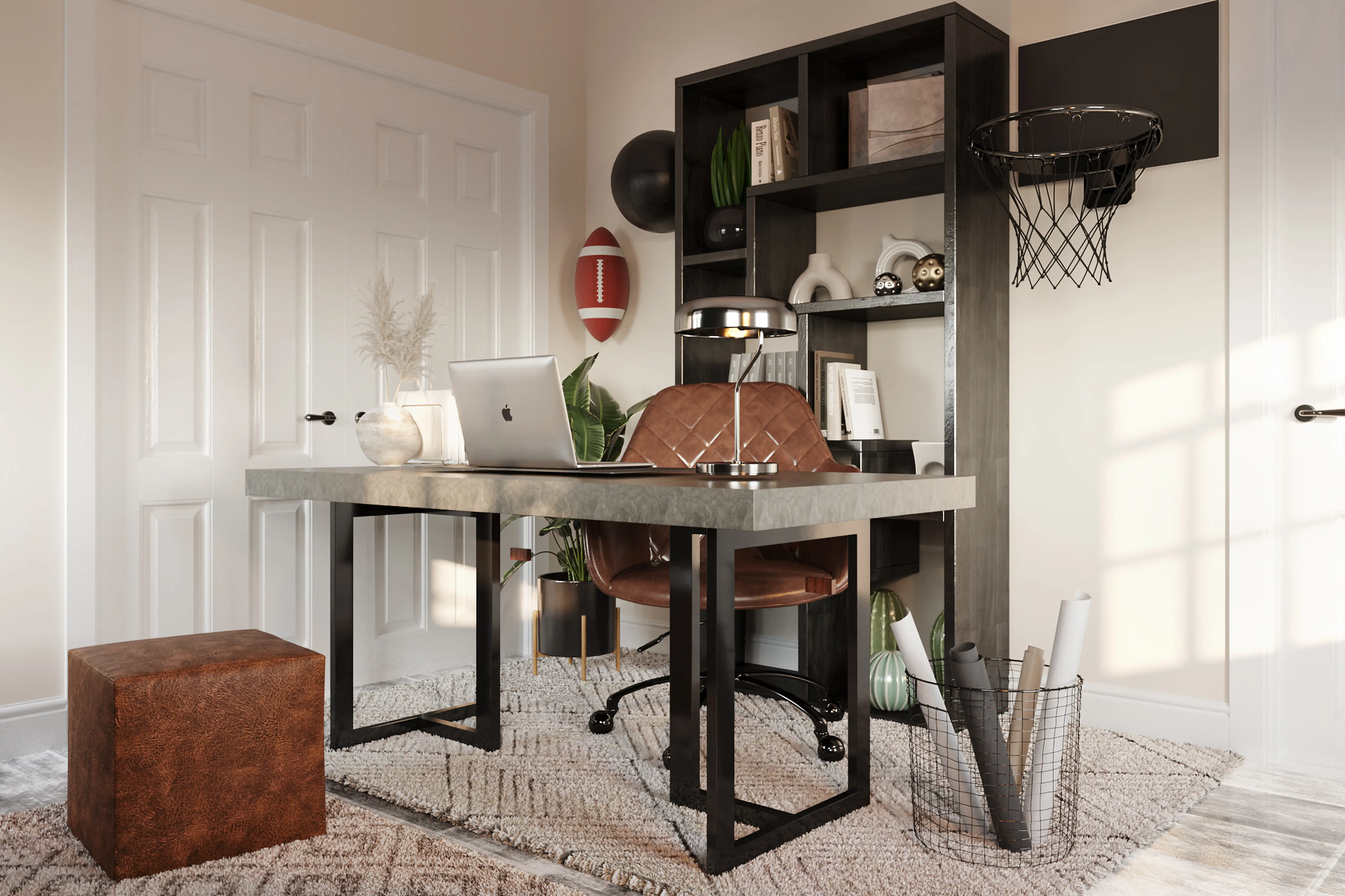 For this Office, Alexa selected desks and ottomans from Crate, Barrel, and CB2. Discover Furniture design inspiration on Havenly.