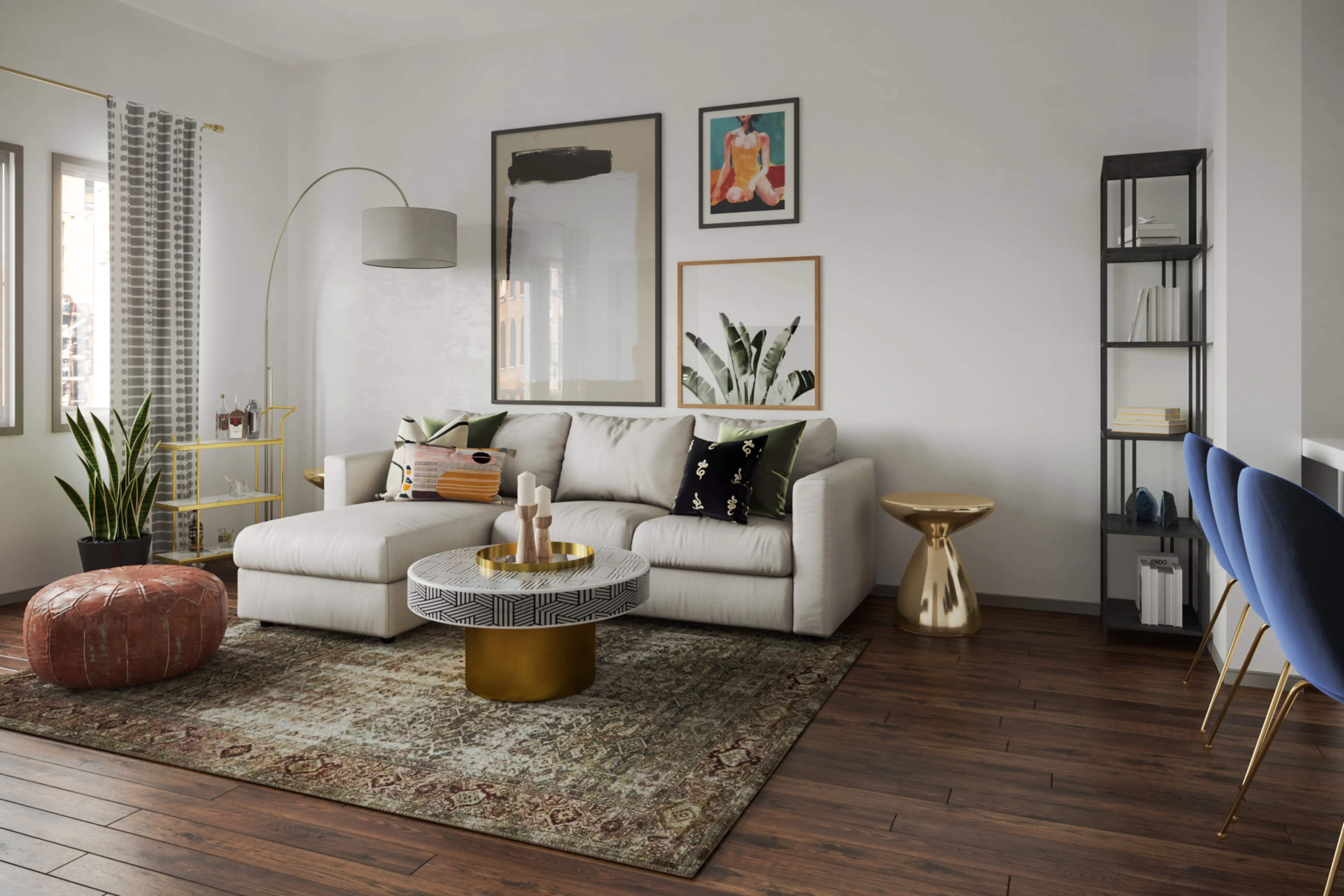 For this Living Room, Chanel selected bookcases, standing shelves, media storage cabinets, and racks from West Elm, Crate, and Barrel. Discover Furniture design inspiration on Havenly.