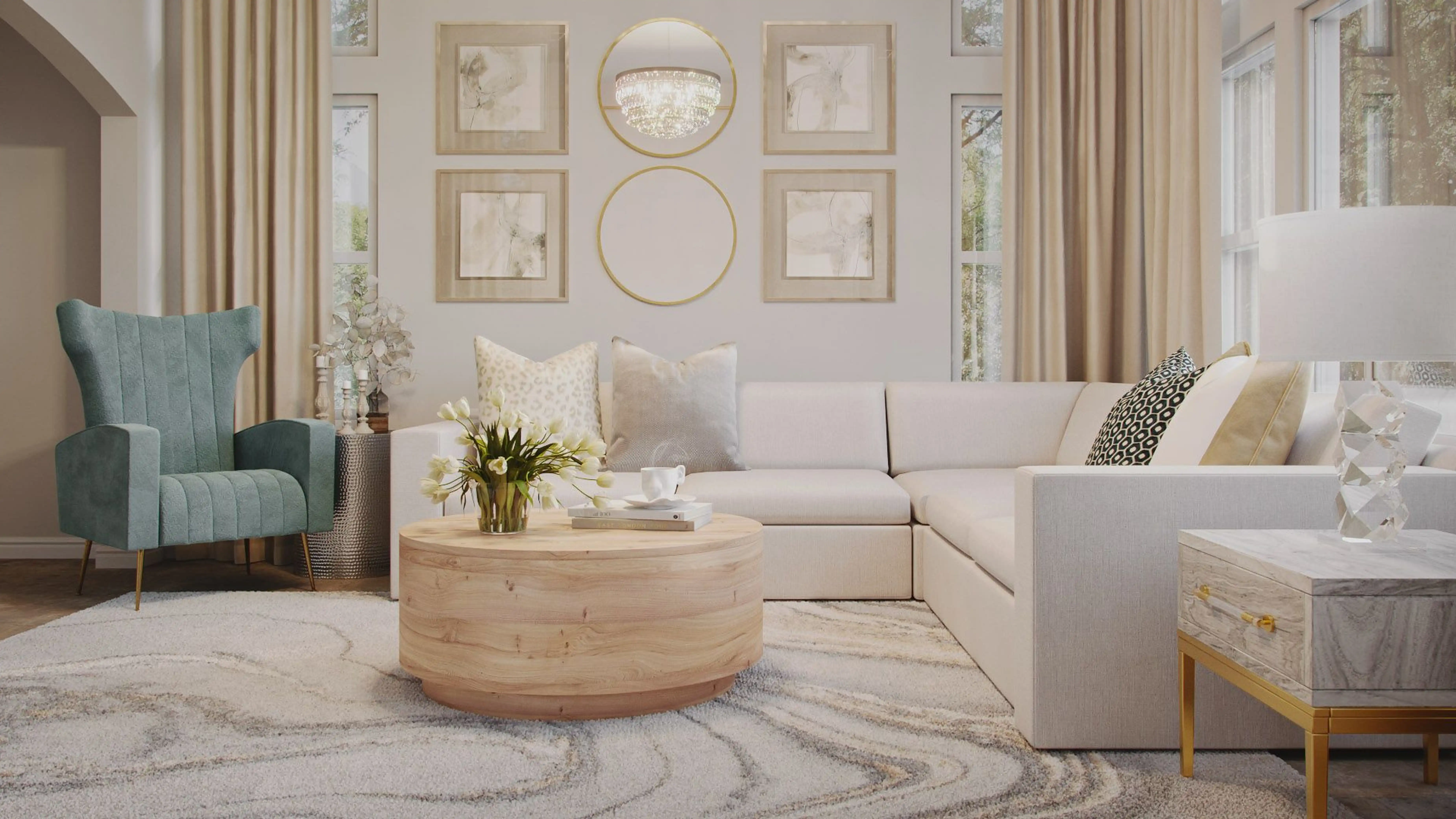 To brighten the design, Contemporary lamps and chandeliers were added to the room. Discover Lighting design inspiration on Havenly.