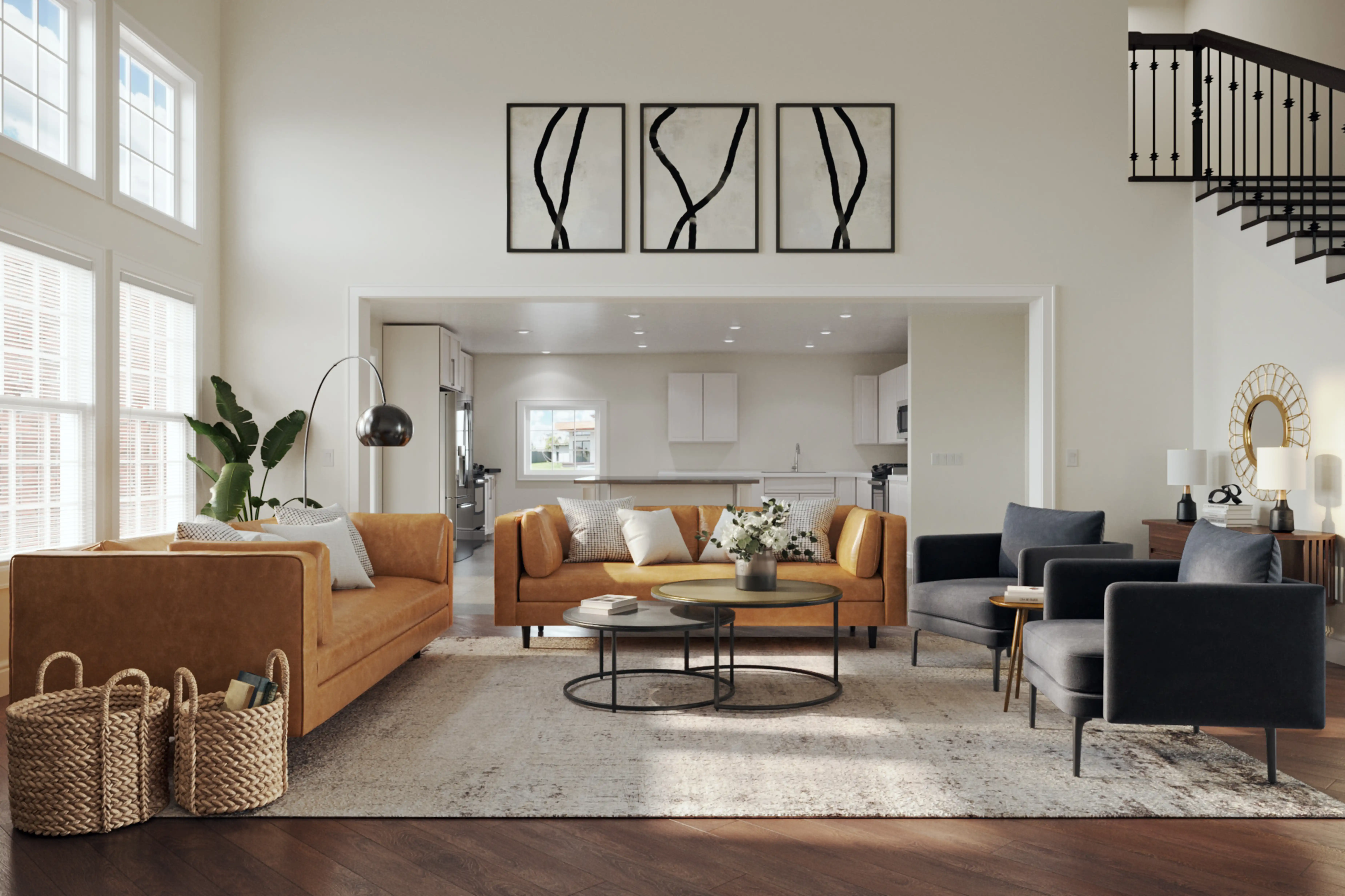 For this room, Taylor selected end tables, media storage cabinets, and racks from Pottery Barn and Joybird. Discover Furniture design inspiration on Havenly.