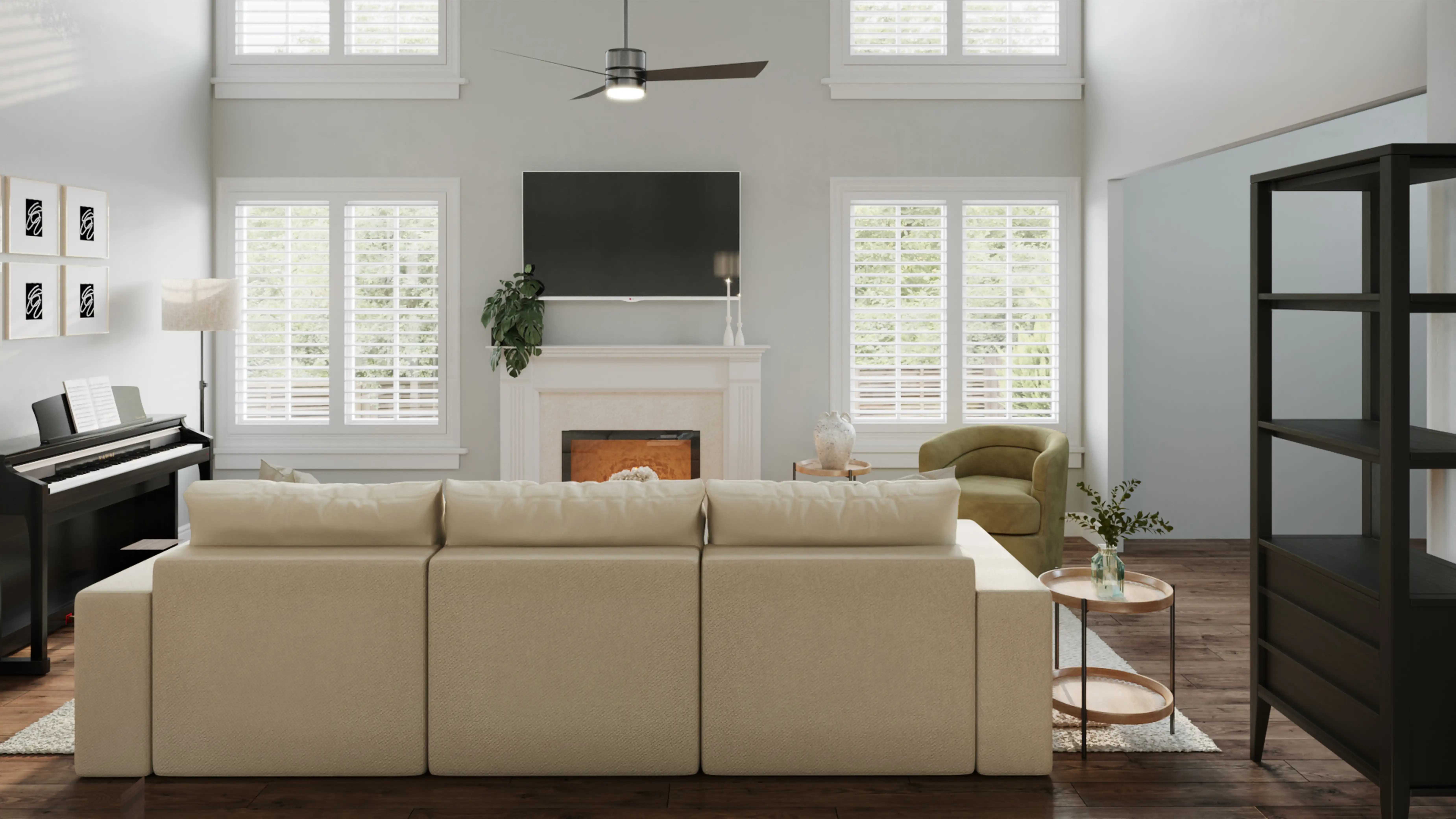 For this Living Room, Daniela selected bookcases, standing shelves, buffets, and sideboards from Crate, Barrel, and Pottery Barn. Discover Furniture design inspiration on Havenly.