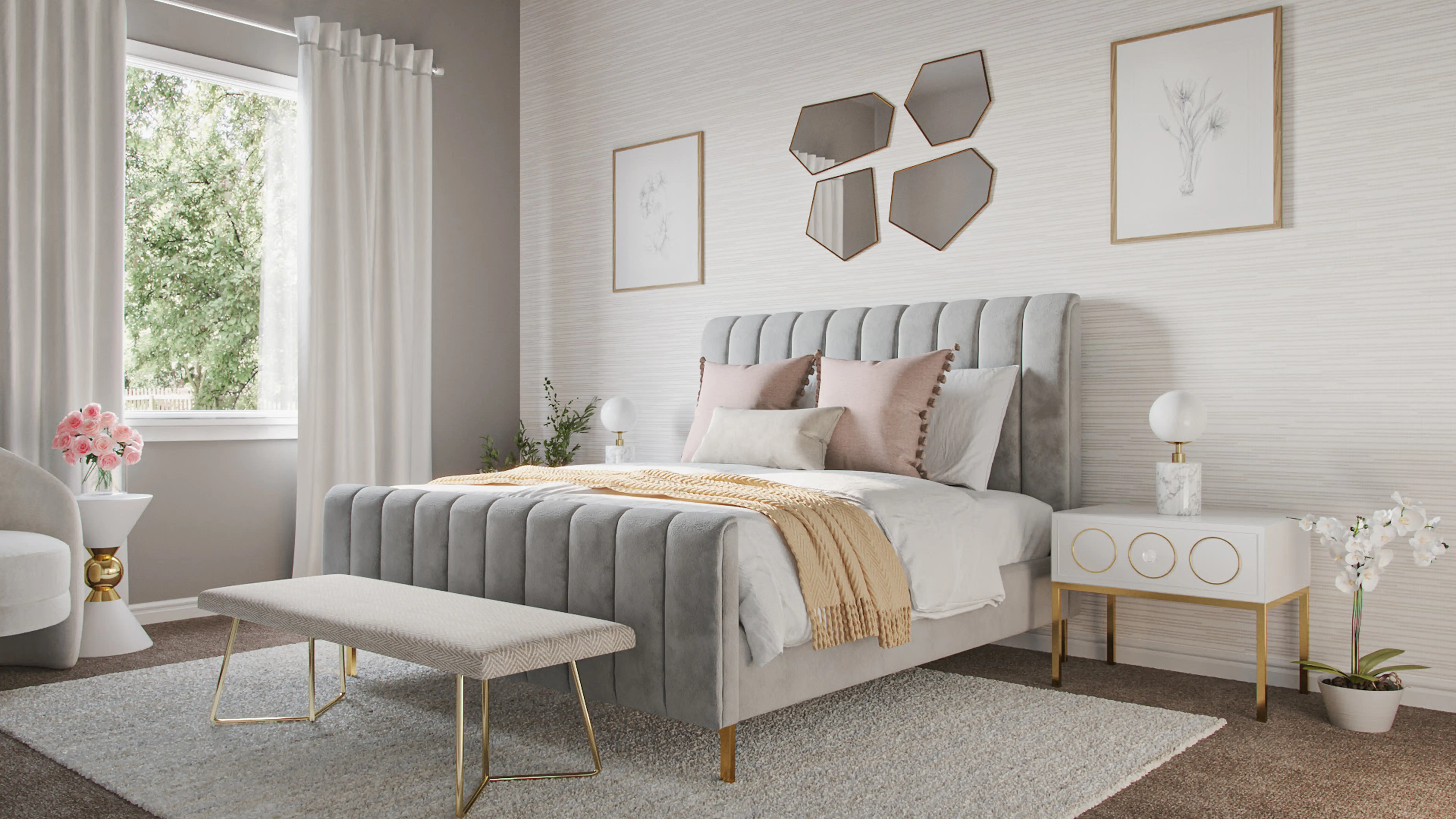 For this Bedroom, Romina selected nightstands and benches from TOV FURNITURE and Deny Designs. Discover Furniture design inspiration on Havenly.