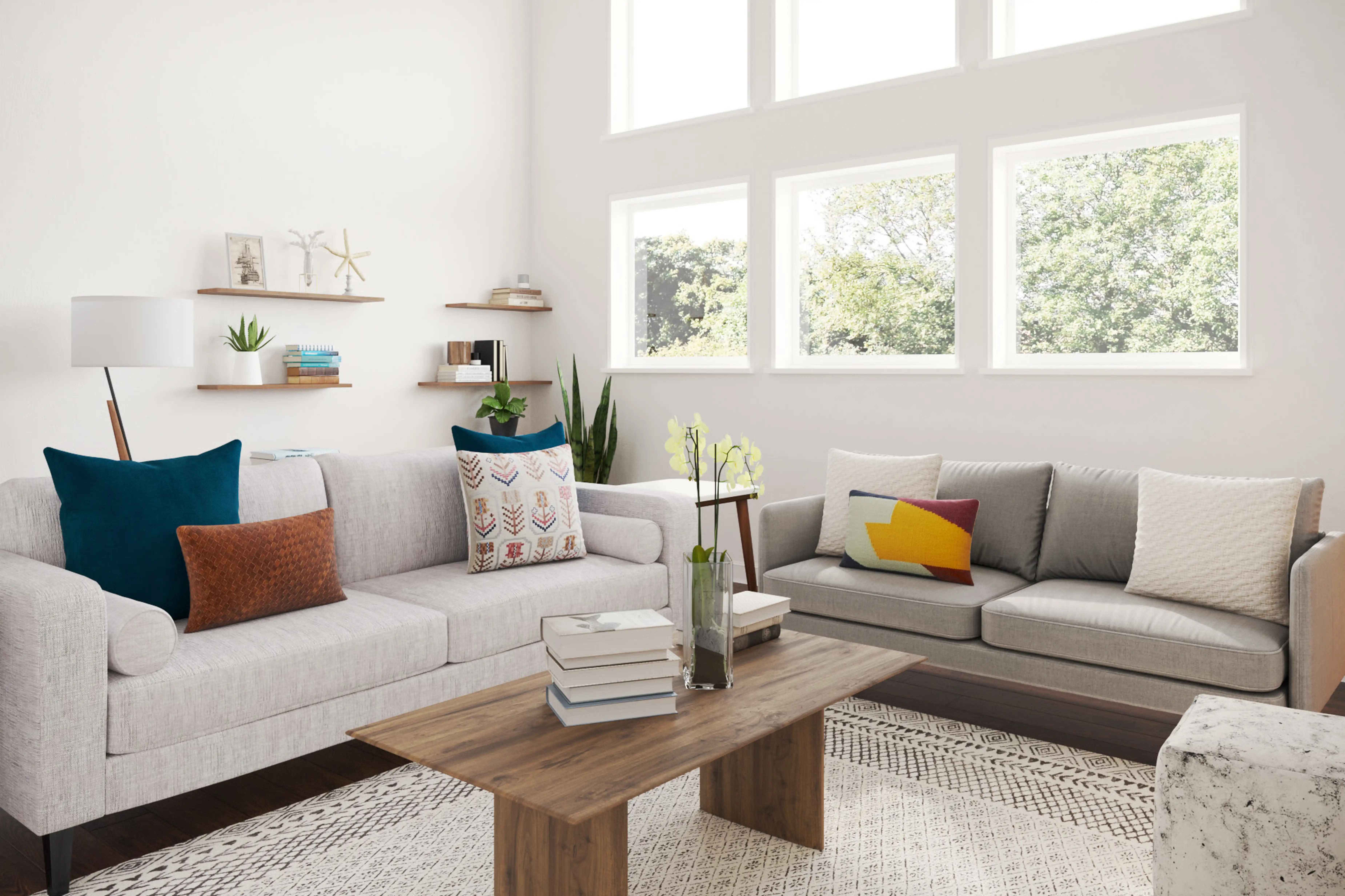 For this Living Room, Carla selected sofas and coffee tables from Article and West Elm. Discover Furniture design inspiration on Havenly.
