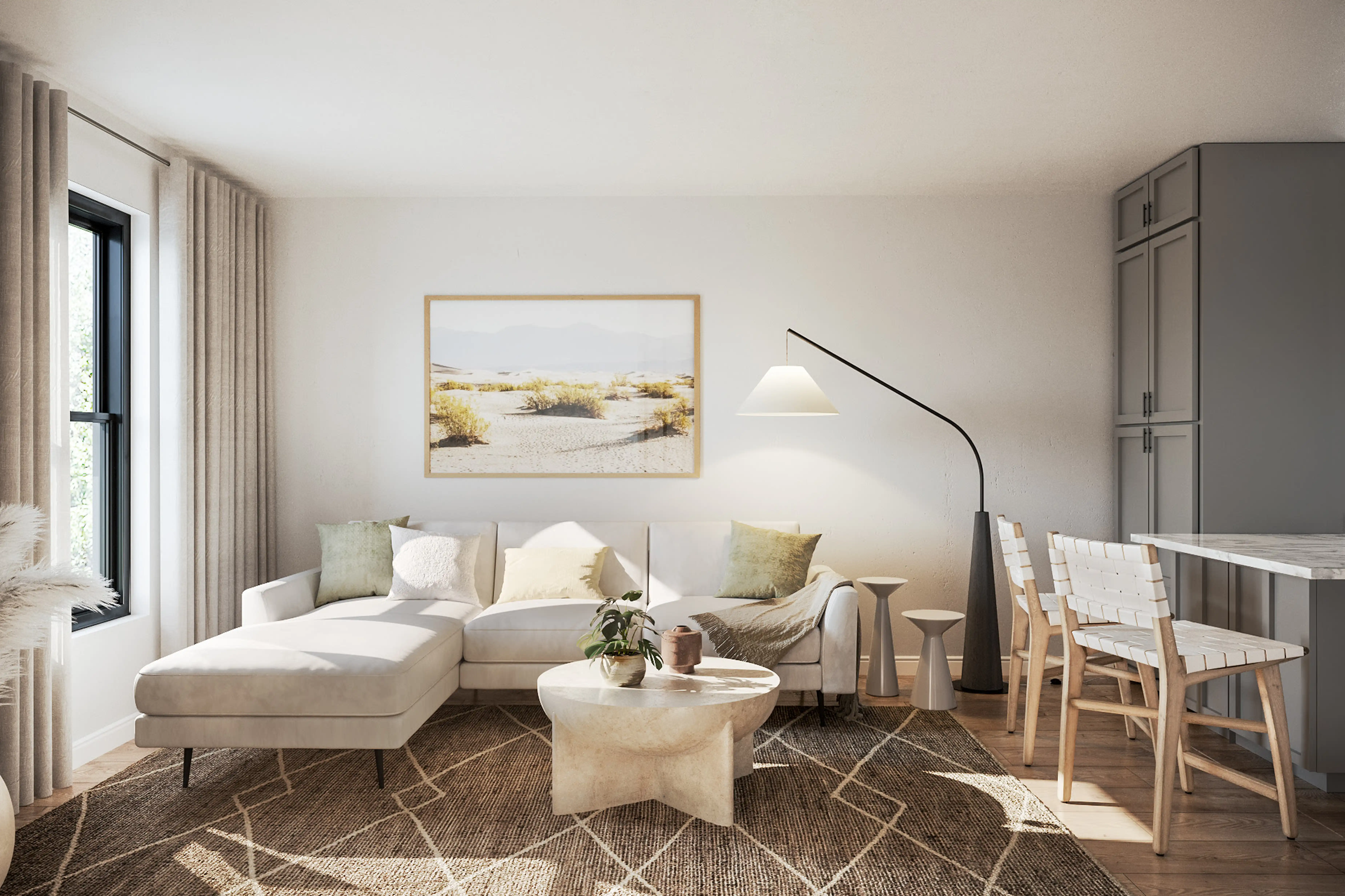 No room is complete without curtain, drape rods, and artwork! Mixing up metal and standard with gold and frame: black // color theme: desert sand / white border helps to add the finishing touches to the room. Discover Decor & Pillow design inspiration on Havenly.