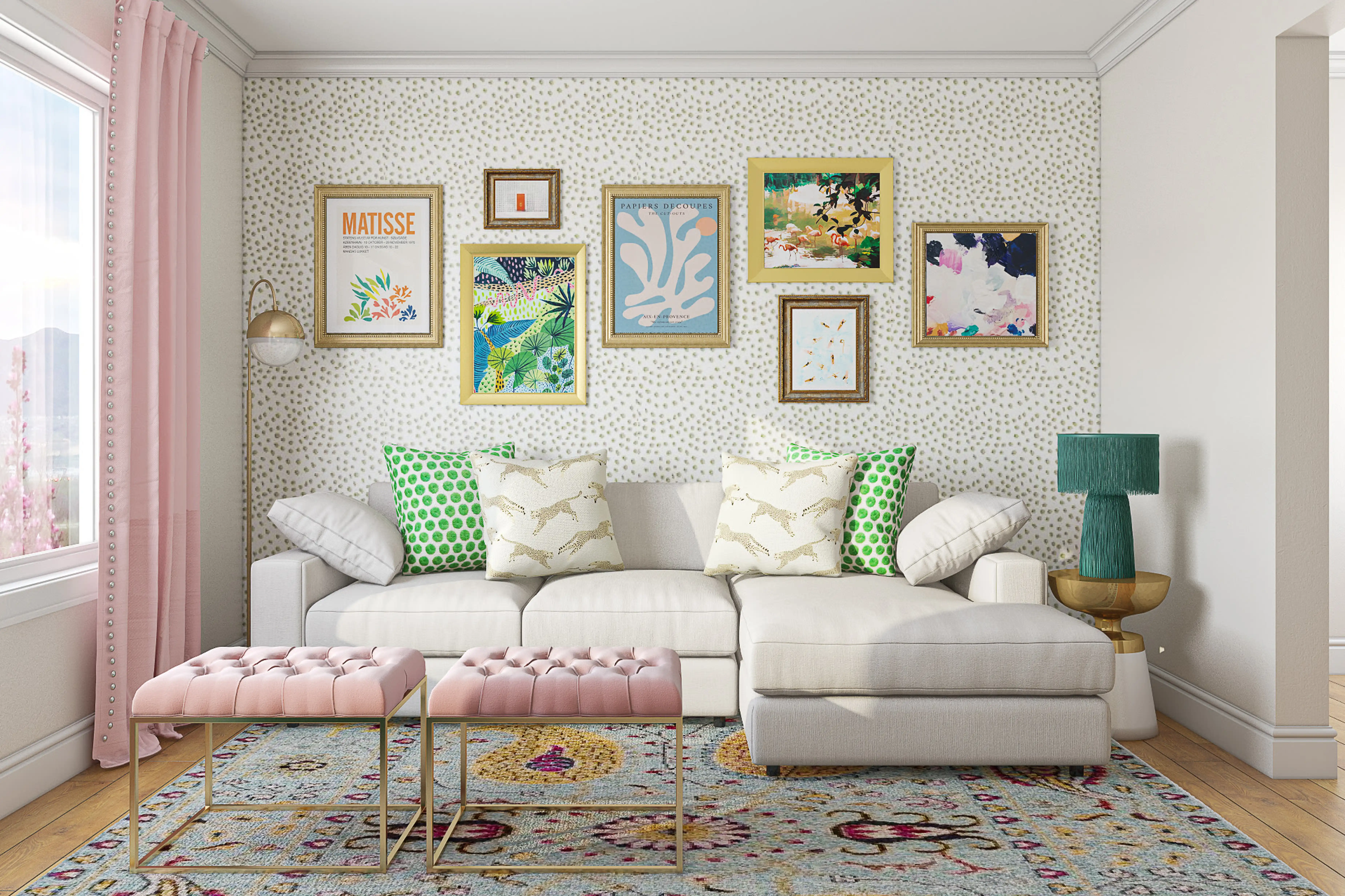 No room is complete without throw pillows, curtains, and drapes! Mixing up 100% linen, down fill, and cotton with picnic green and b-pink helps to add the finishing touches to the room. Discover Decor & Pillow design inspiration on Havenly.