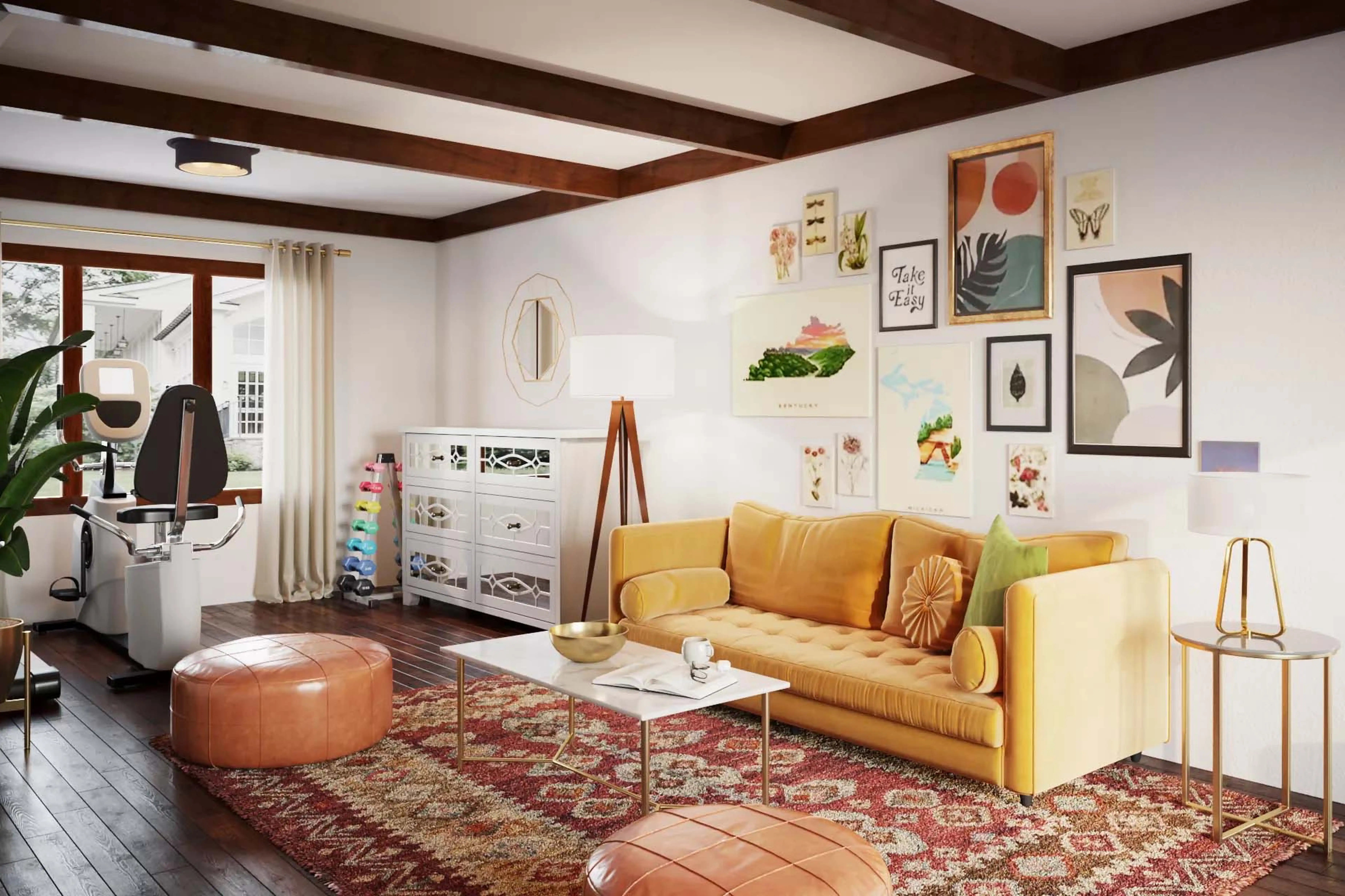 The rug in this space from Wayfair helps add a variety of colors to the room. Discover Rug design inspiration on Havenly.