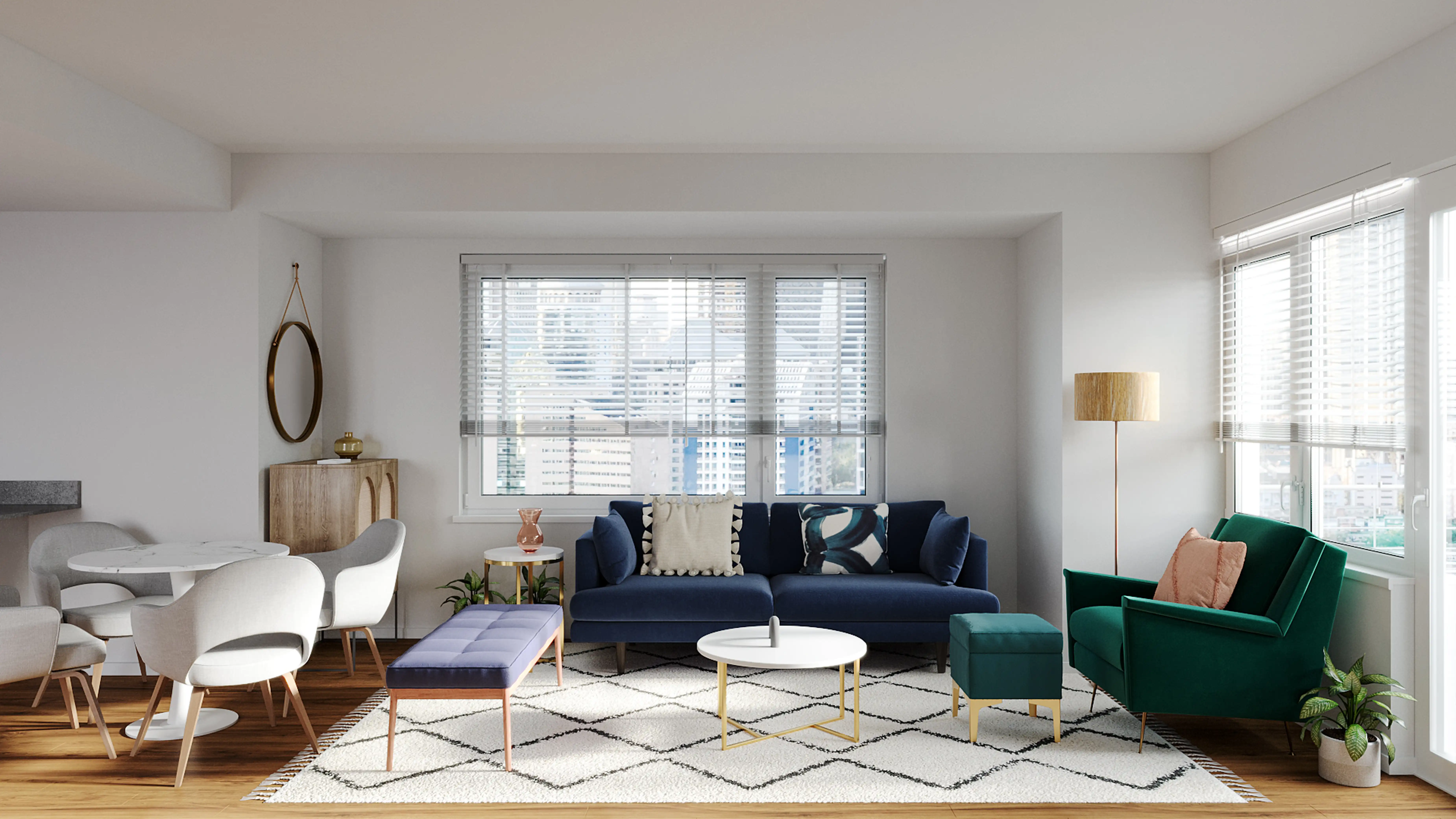 For this Living Room, Natalia selected coffee tables, kitchen, and dining room tables from Wayfair and AllModern. Discover Furniture design inspiration on Havenly.