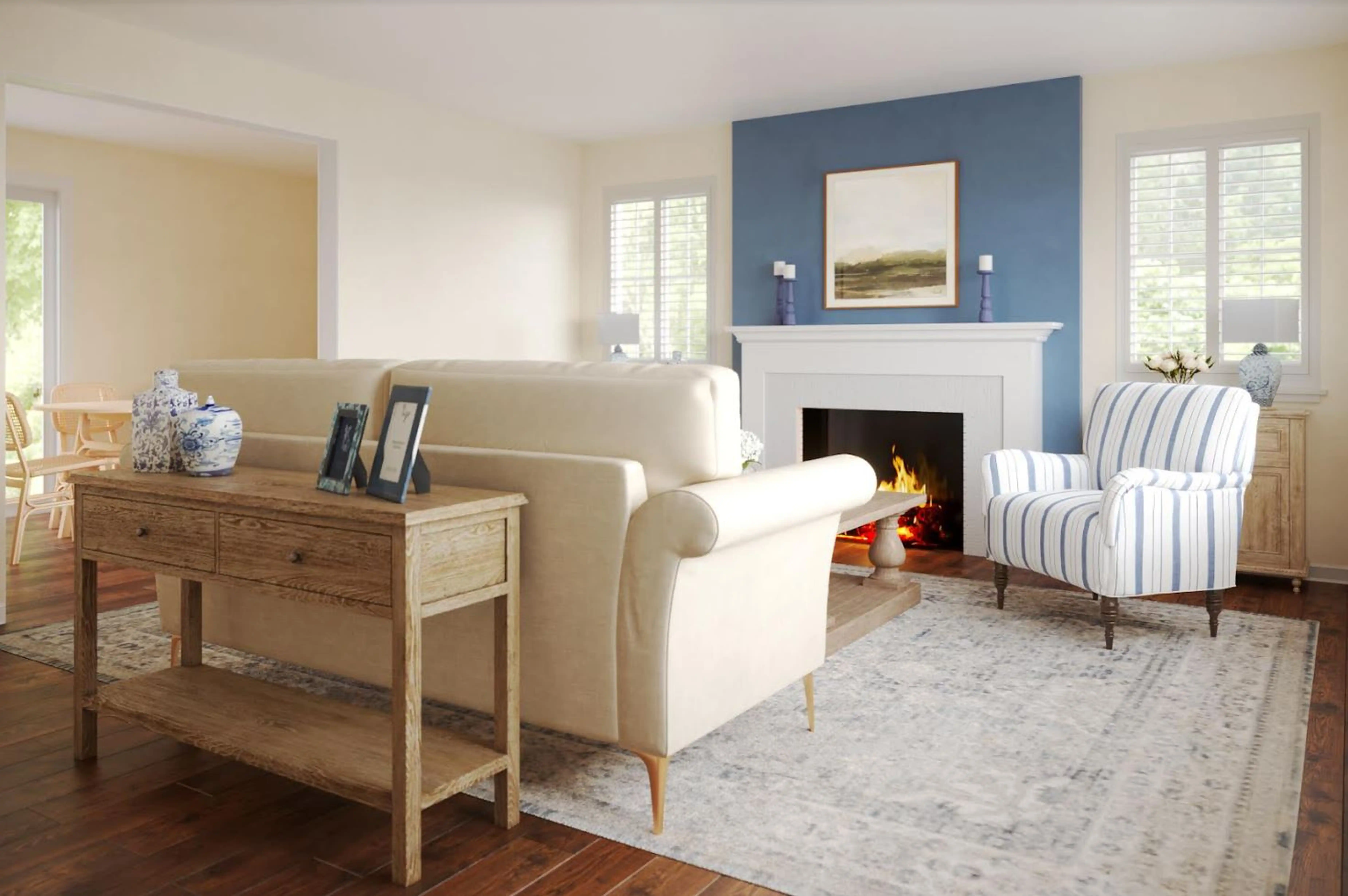 For this room, Sarah selected sofas, buffets, and sideboards from Crate, Barrel, and Pottery Barn. Discover Furniture design inspiration on Havenly.