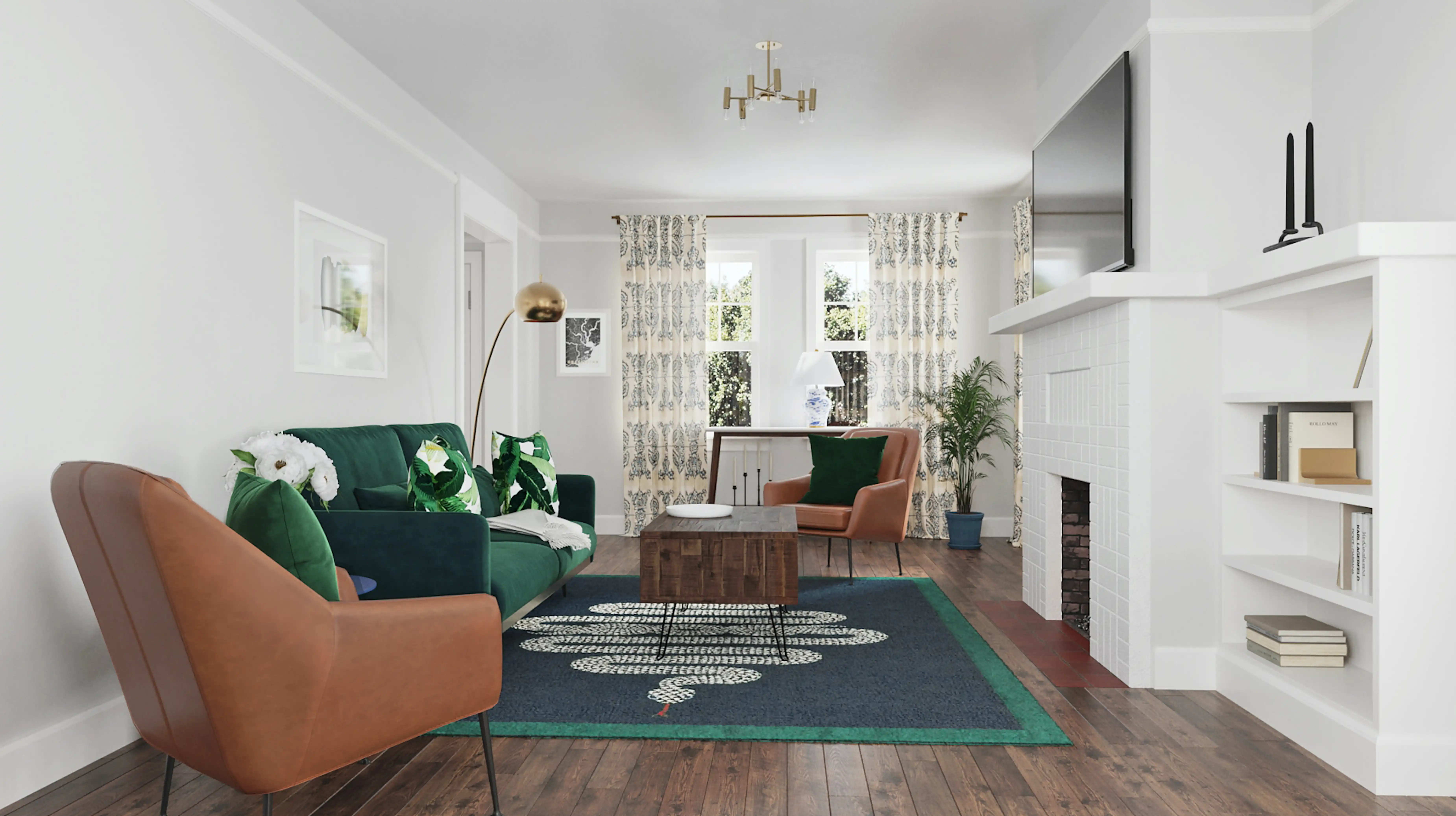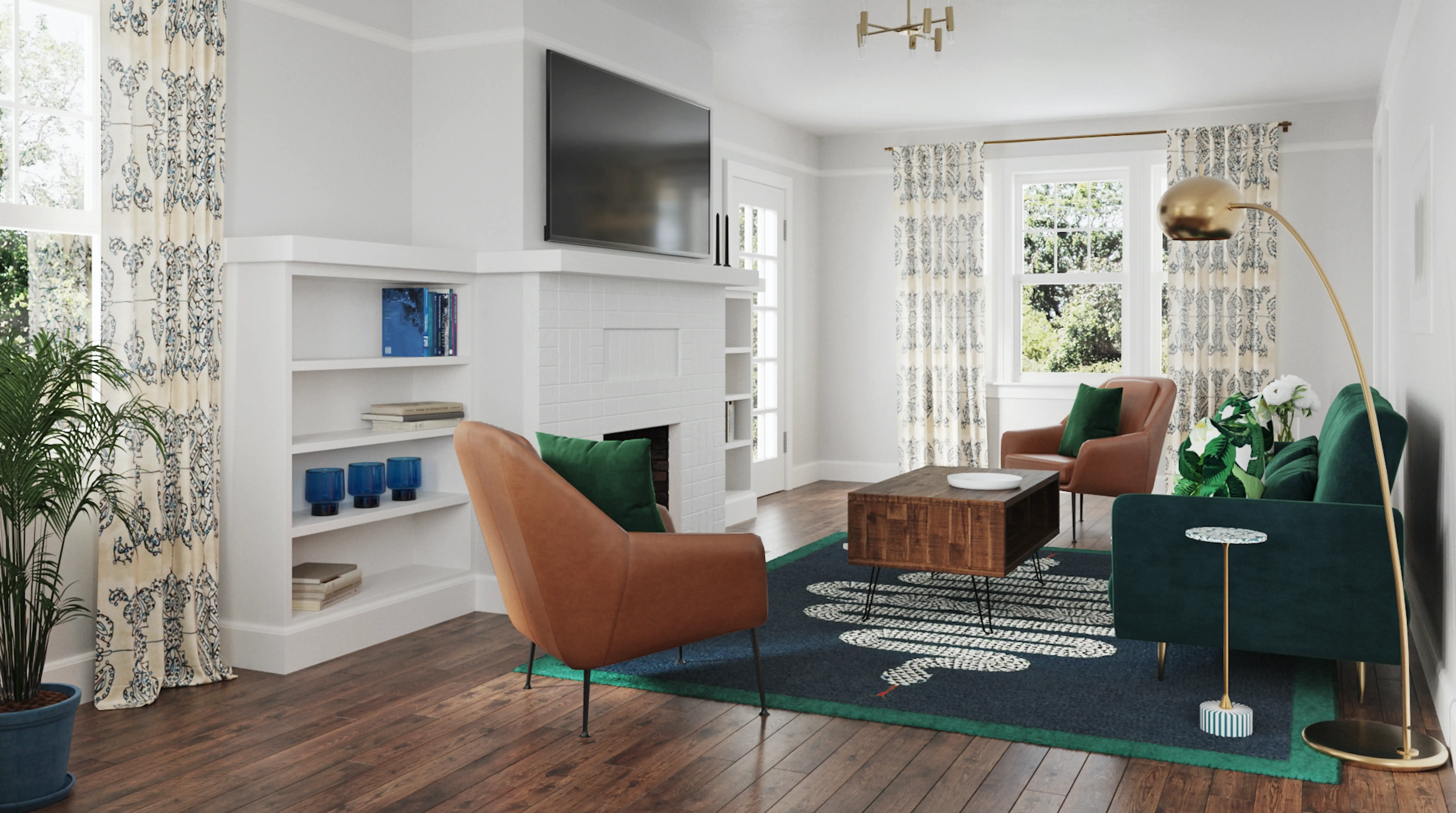 For this Living Room, Samantha selected kitchen, dining room chairs, and end tables from West Elm and Anthropologie. Discover Furniture design inspiration on Havenly.