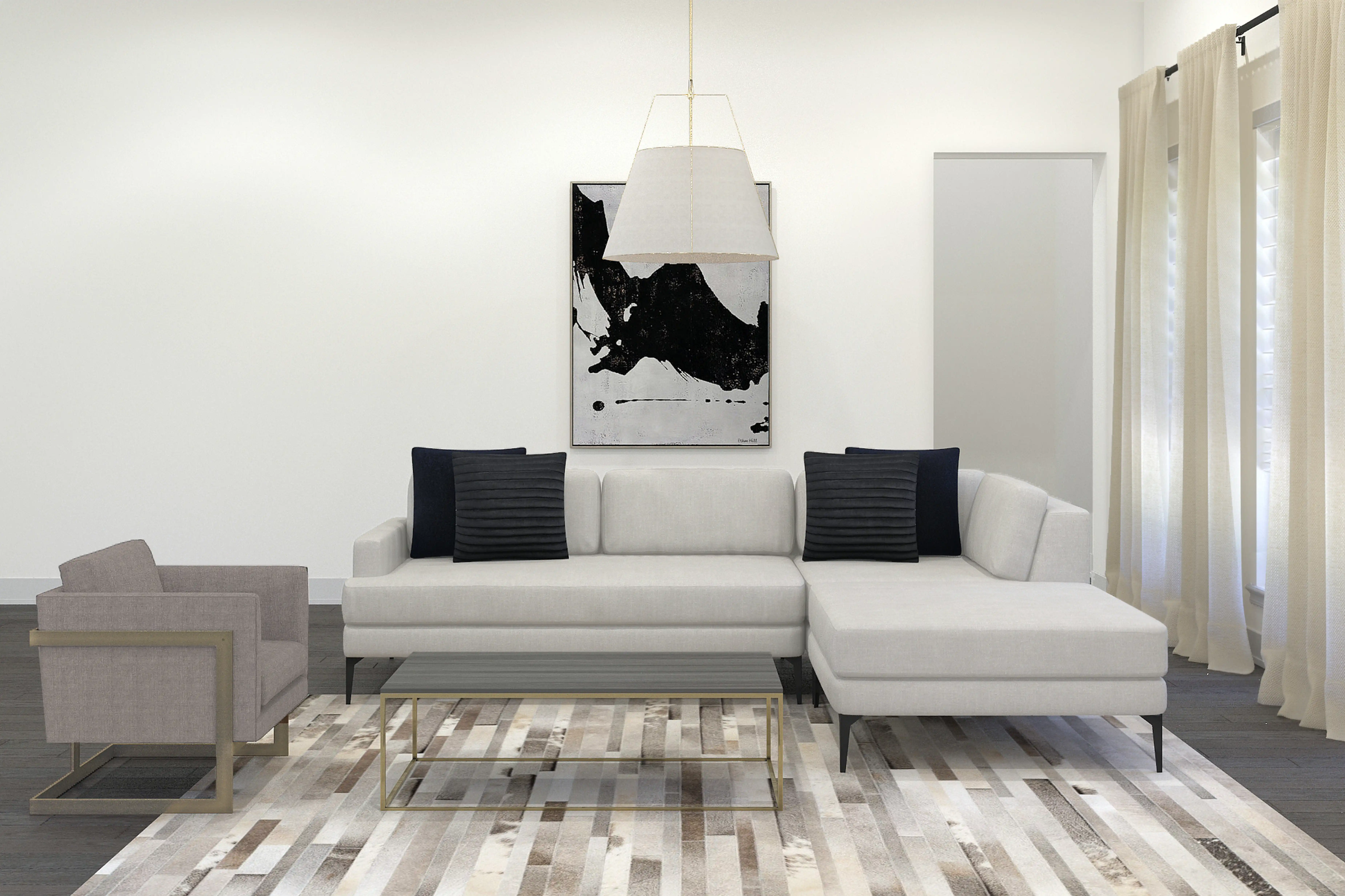 For this room, Isabella selected entertainment centers, tv stands, and sectionals from CB2 and West Elm. Discover Furniture design inspiration on Havenly.
