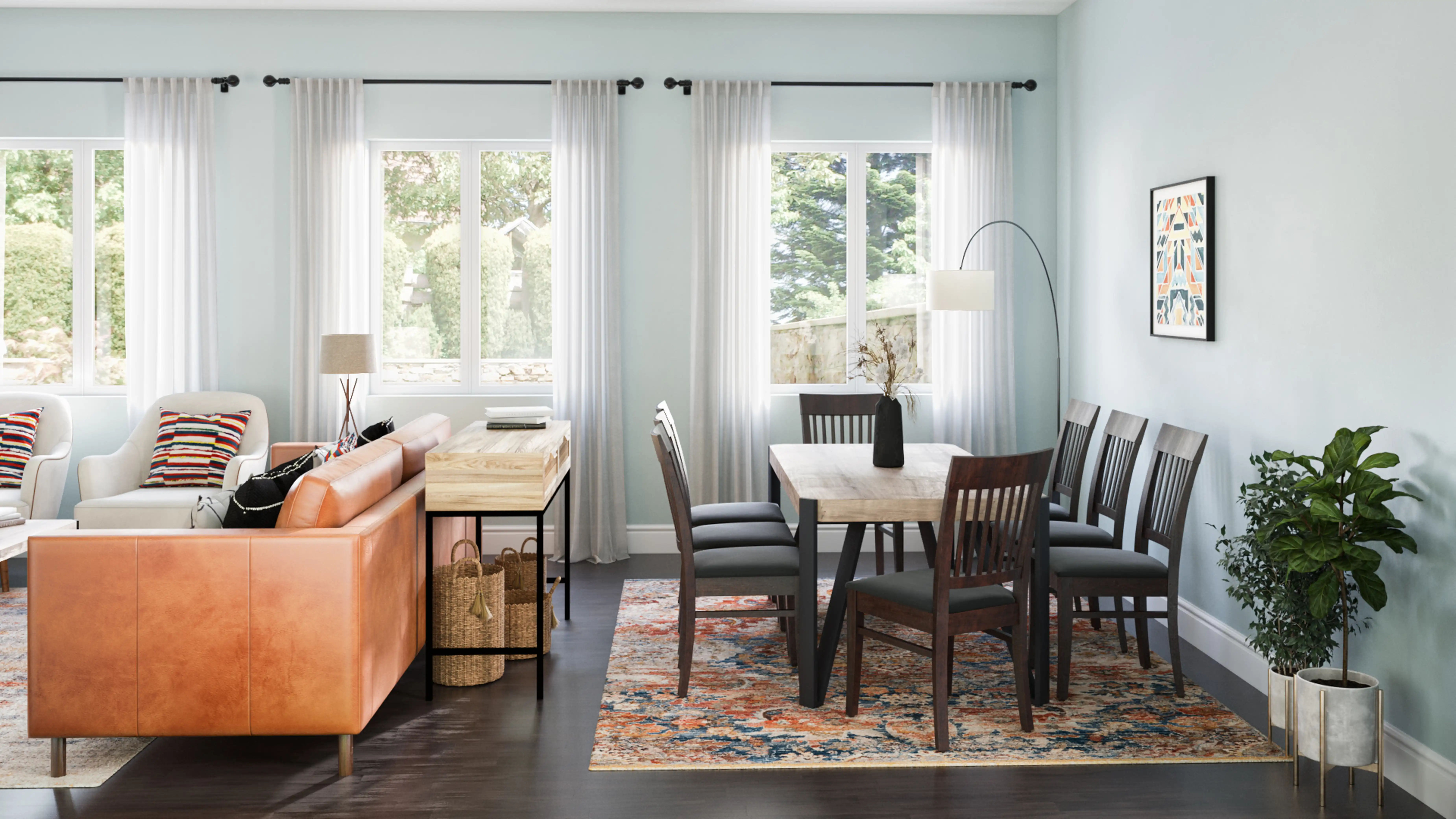 The rugs in this space from Jaipur Living help add a variety of colors to the room. Discover Rug design inspiration on Havenly.
