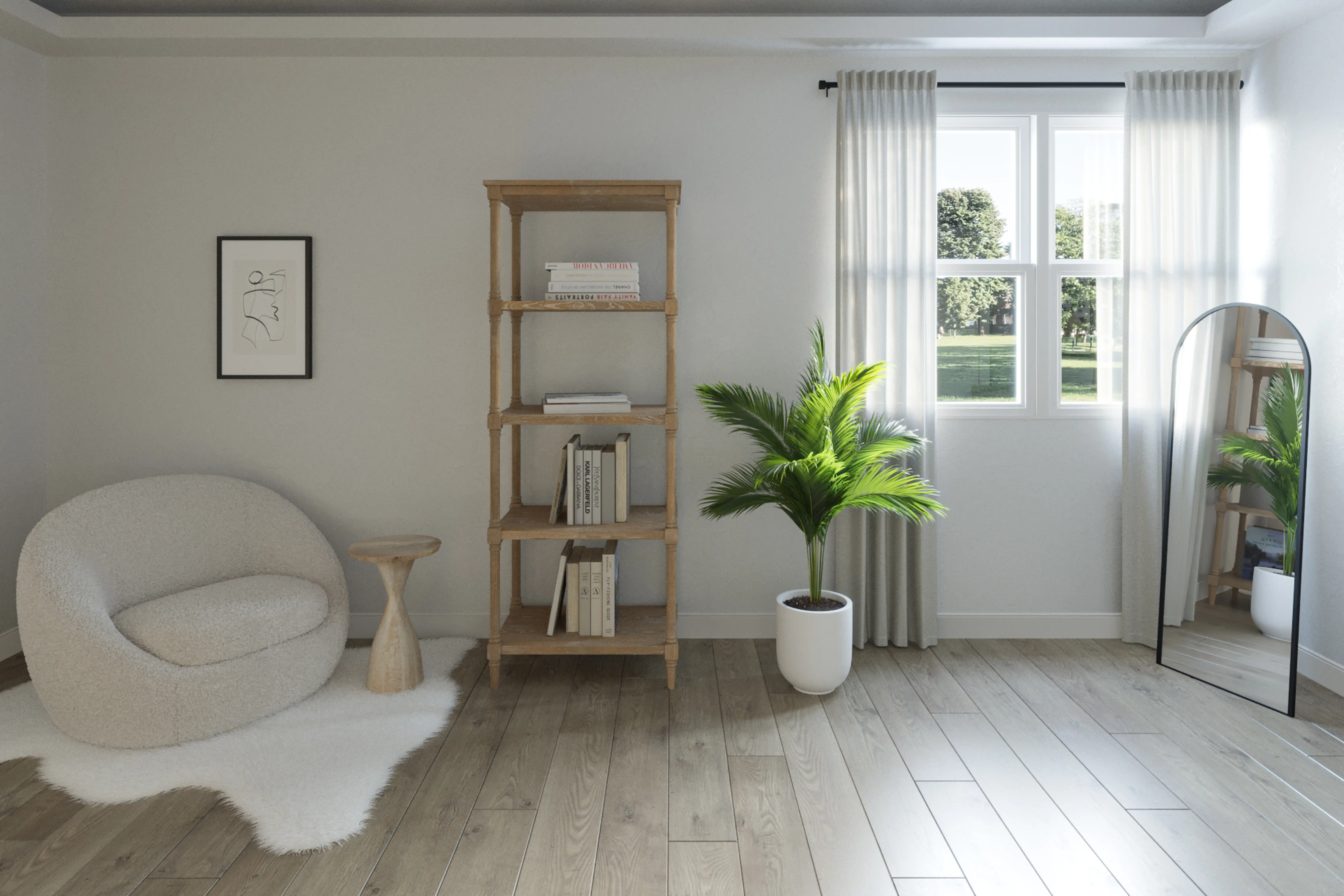 For this room, Andrea selected bookcases, standing shelves, and nightstands from Safavieh and West Elm. Discover Furniture design inspiration on Havenly.