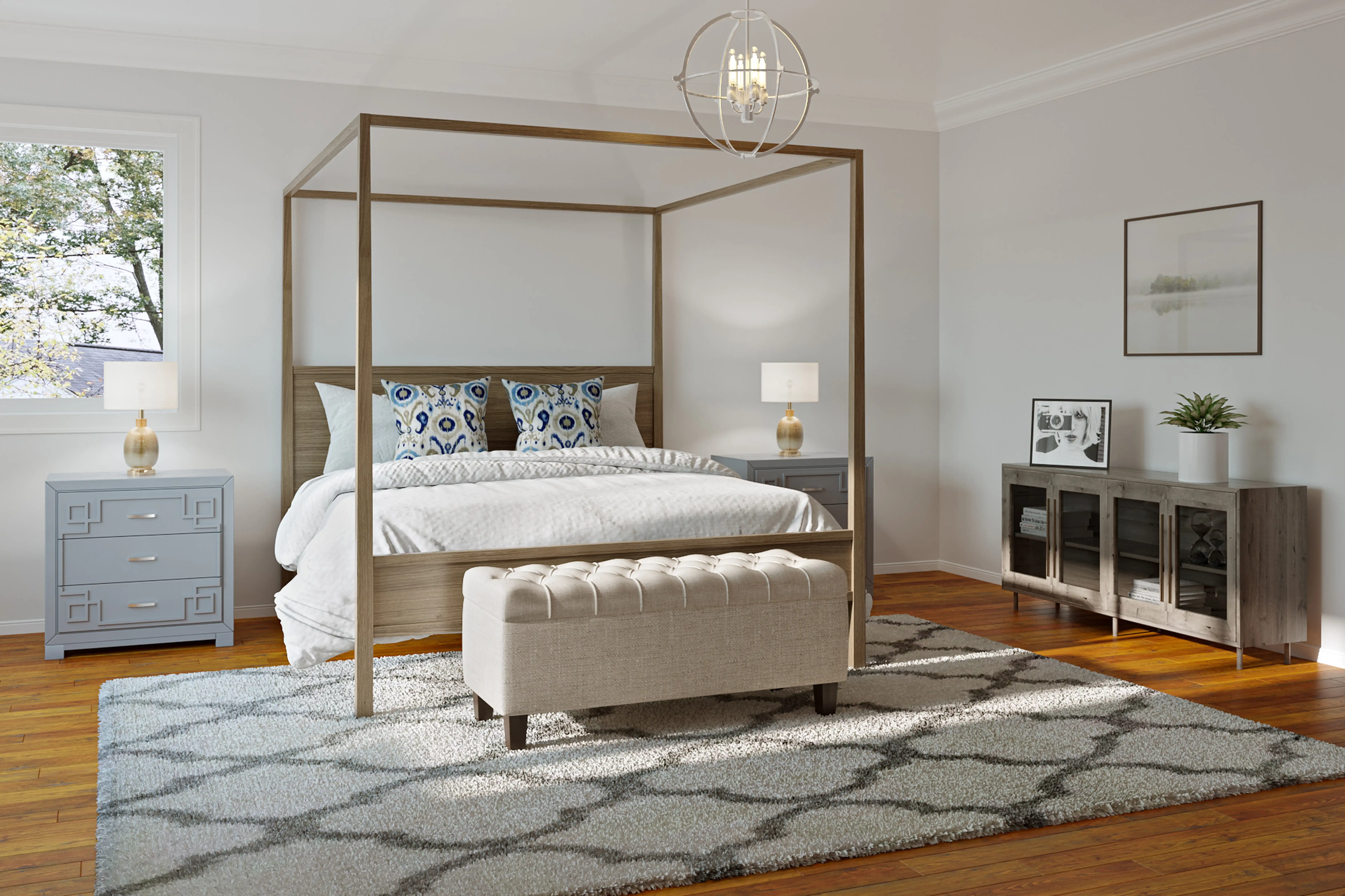For this Bedroom, Troyce selected nightstands, media storage cabinets, and racks from Wayfair and Surya. Discover Furniture design inspiration on Havenly.