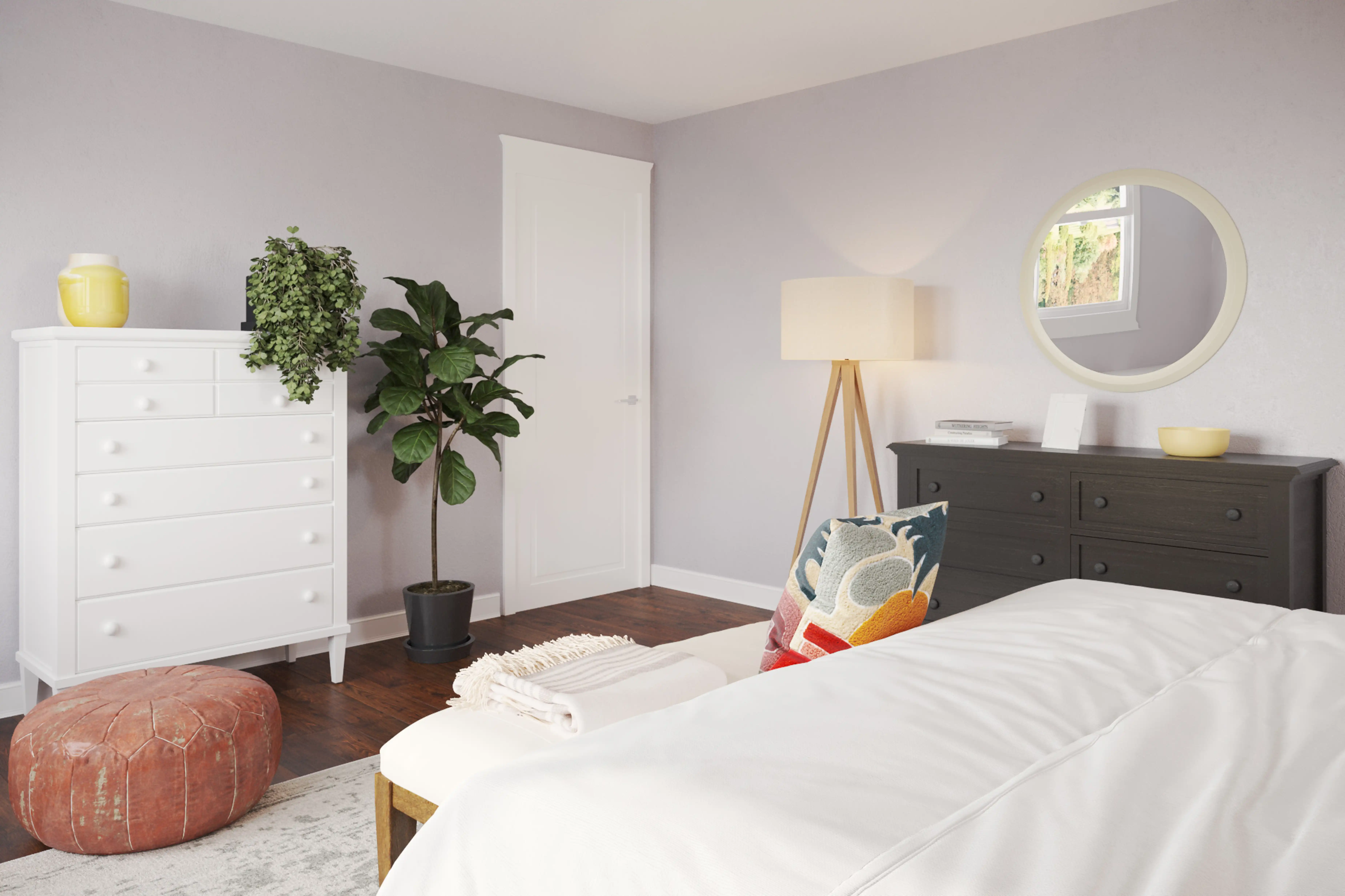 For this Bedroom, Milena selected poufs and accent tables from Roam Common and Wayfair. Discover Furniture design inspiration on Havenly.