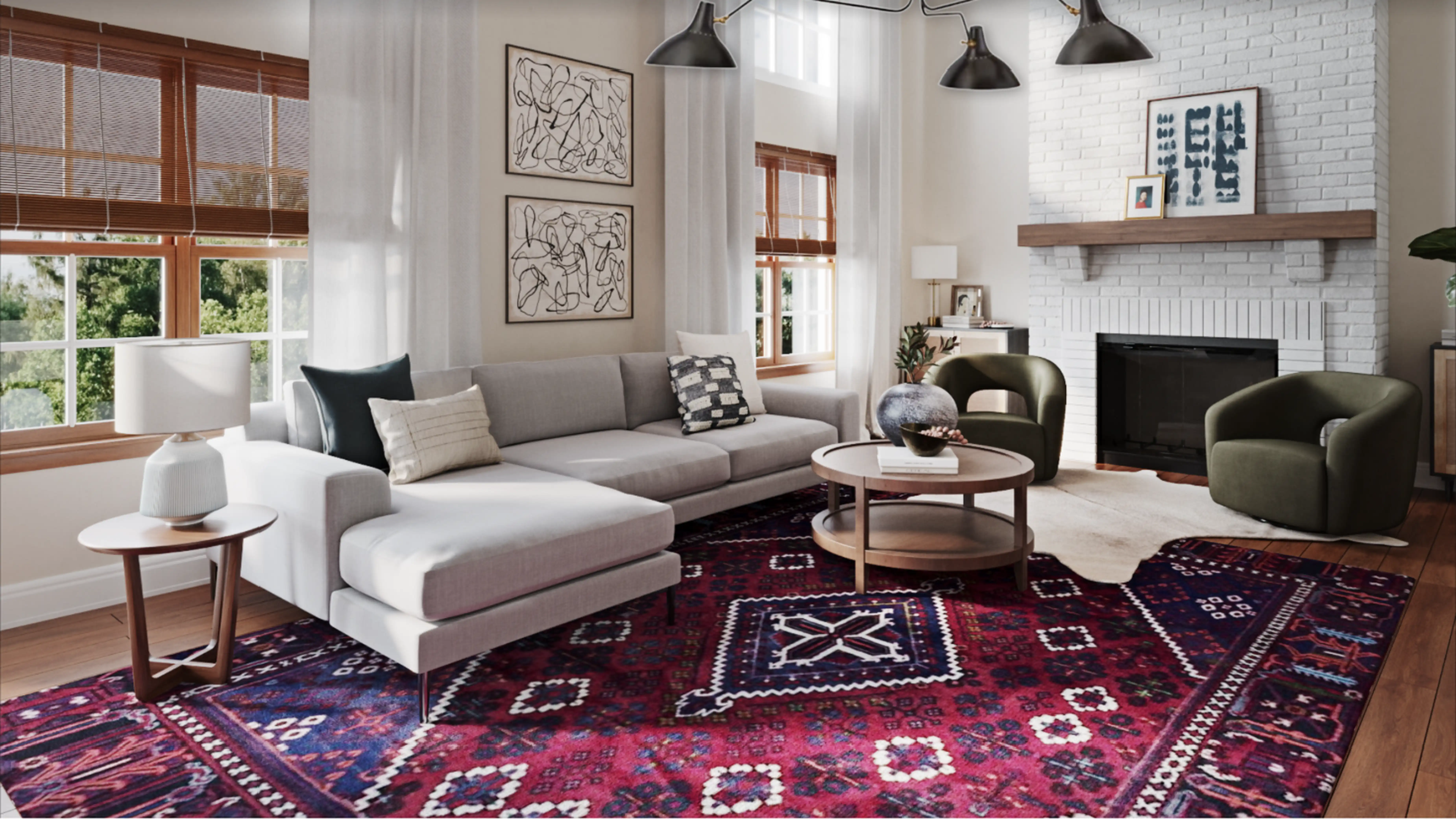 The rug in this space from CB2 helps add a variety of colors to the room. Discover Rug design inspiration on Havenly.