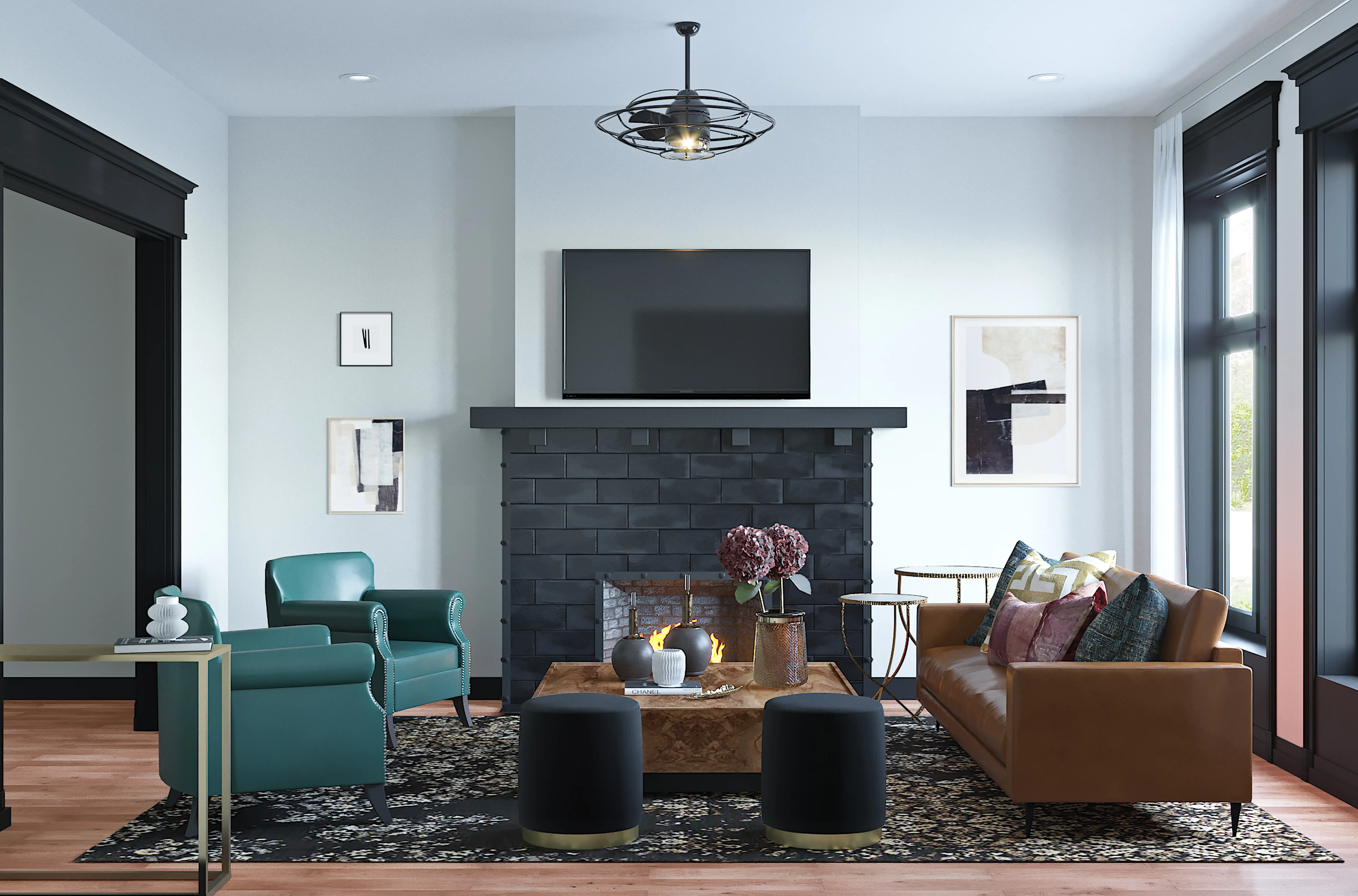 For this room, Stacy selected accent tables and ottomans from Crate, Barrel, and TOV FURNITURE. Discover Furniture design inspiration on Havenly.