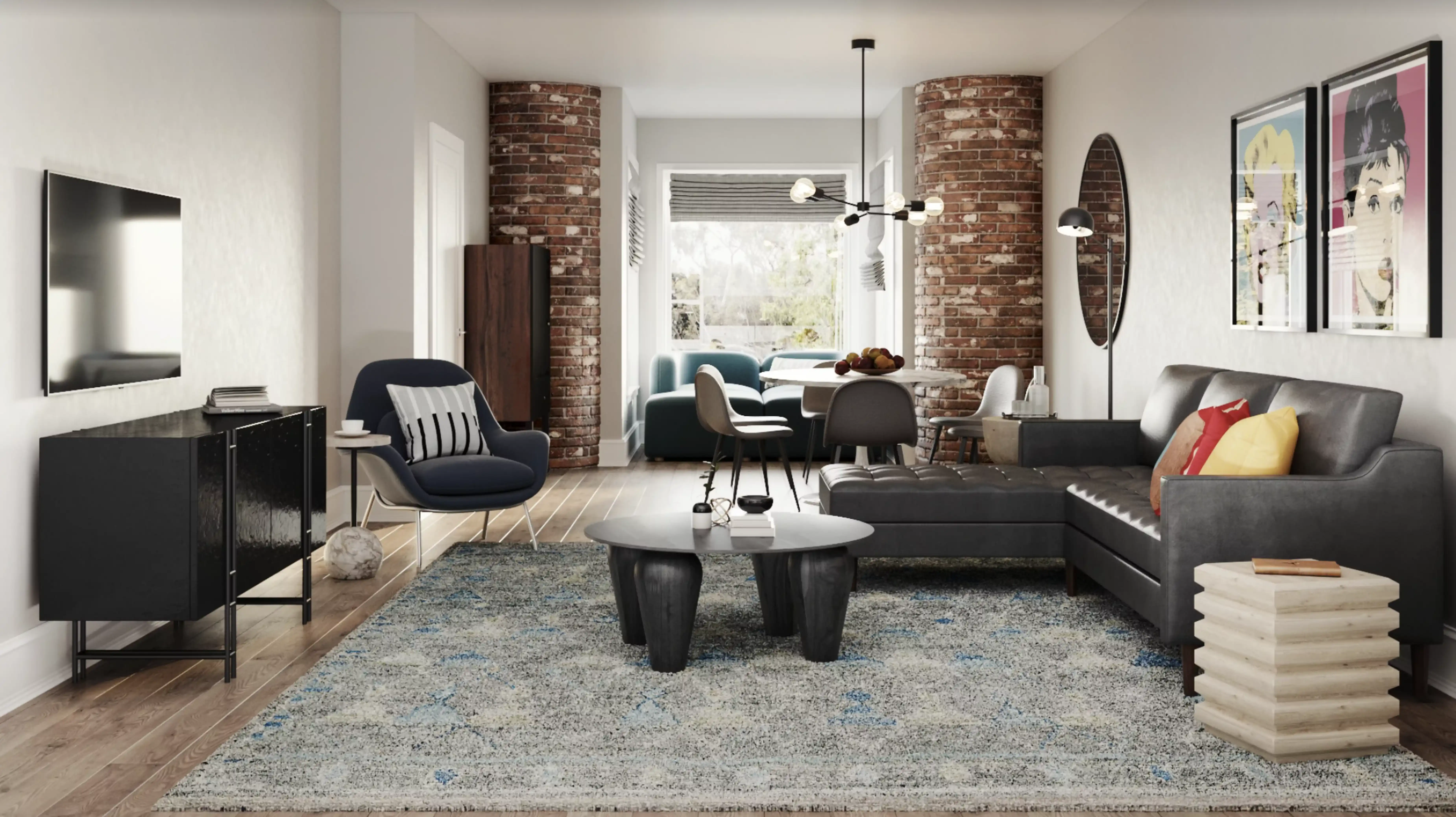 The rugs in this space from Jaipur Living and Surya help add a variety of colors to the room. Discover Rug design inspiration on Havenly.