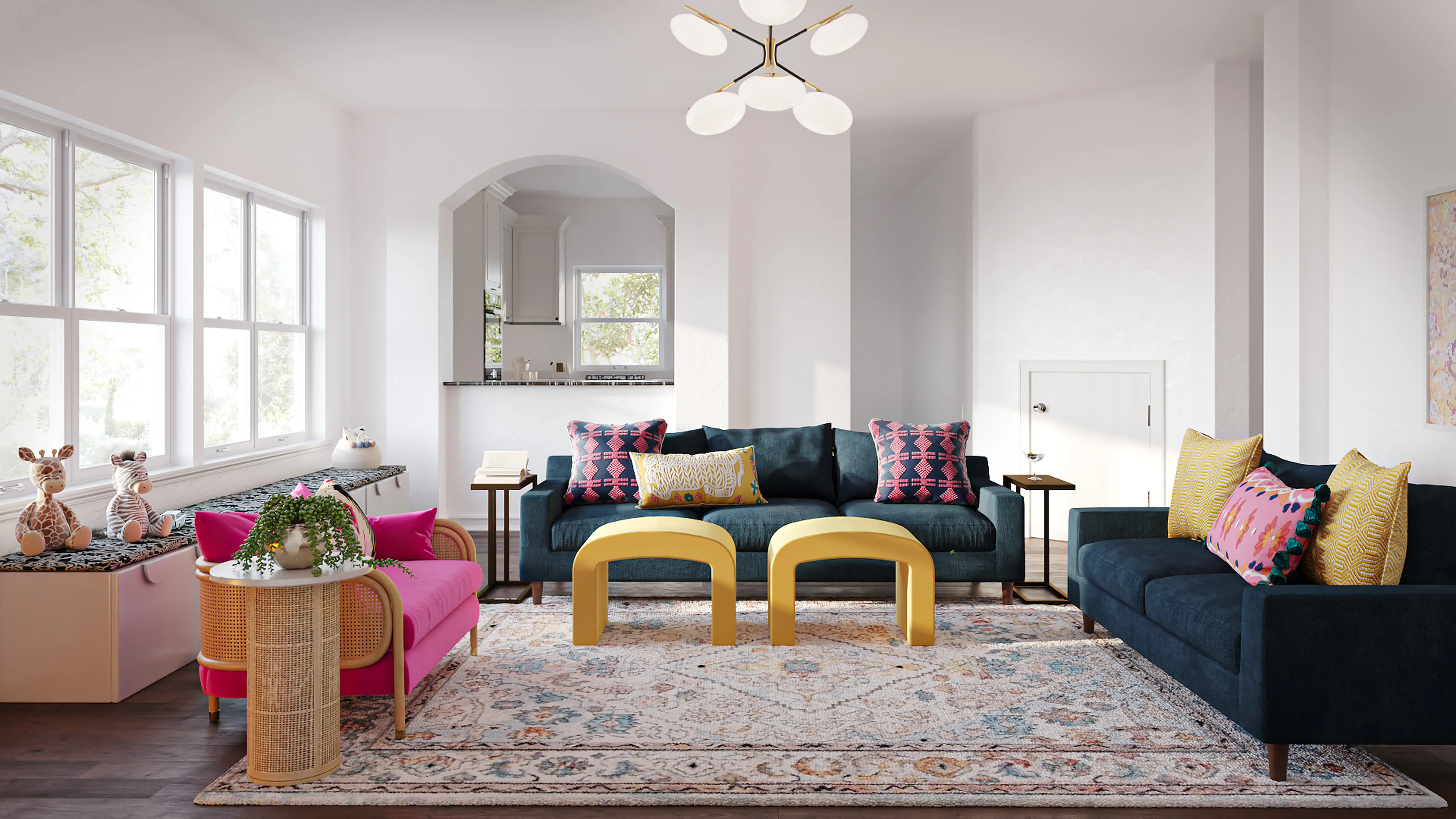 For this Living Room, Marisa selected kitchen, dining room tables, and end tables from Crate, Barrel, and West Elm. Discover Furniture design inspiration on Havenly.