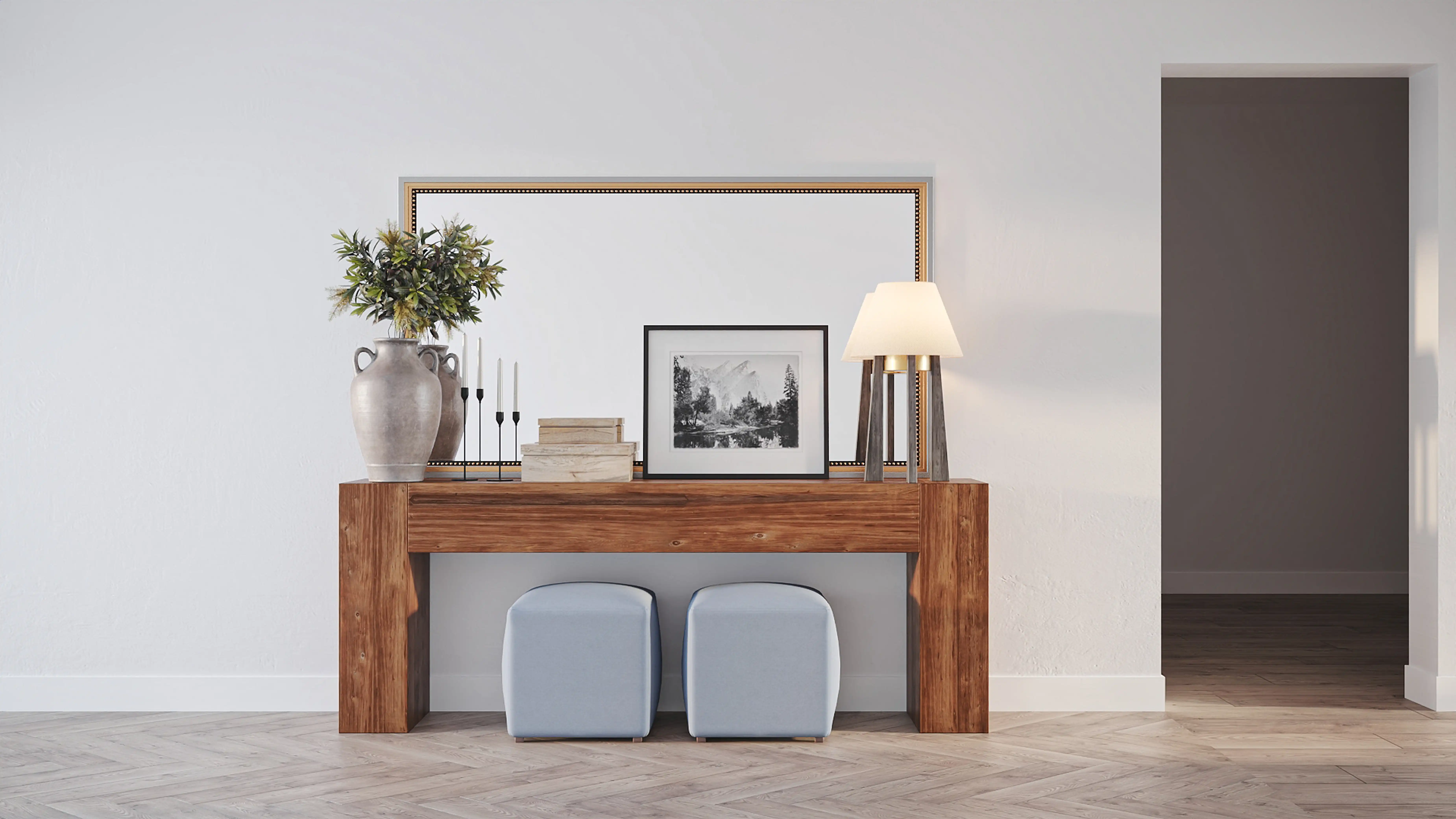 For this Entryway, Briana selected accent tables and ottomans from Arhaus and The Inside. Discover Furniture design inspiration on Havenly.