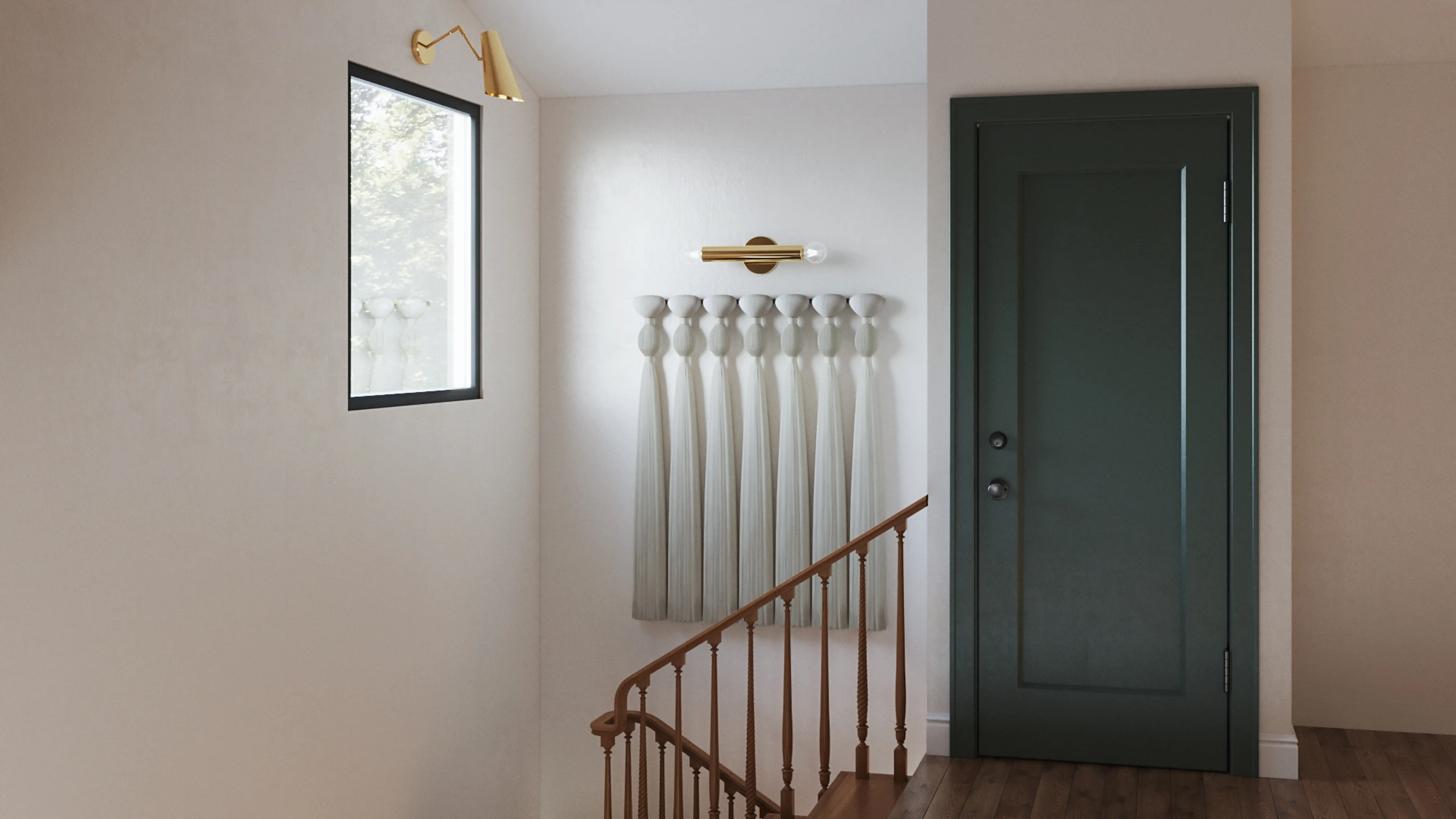 To brighten the design, Modern wall light fixtures and chandeliers were added to the room. Discover Lighting design inspiration on Havenly.