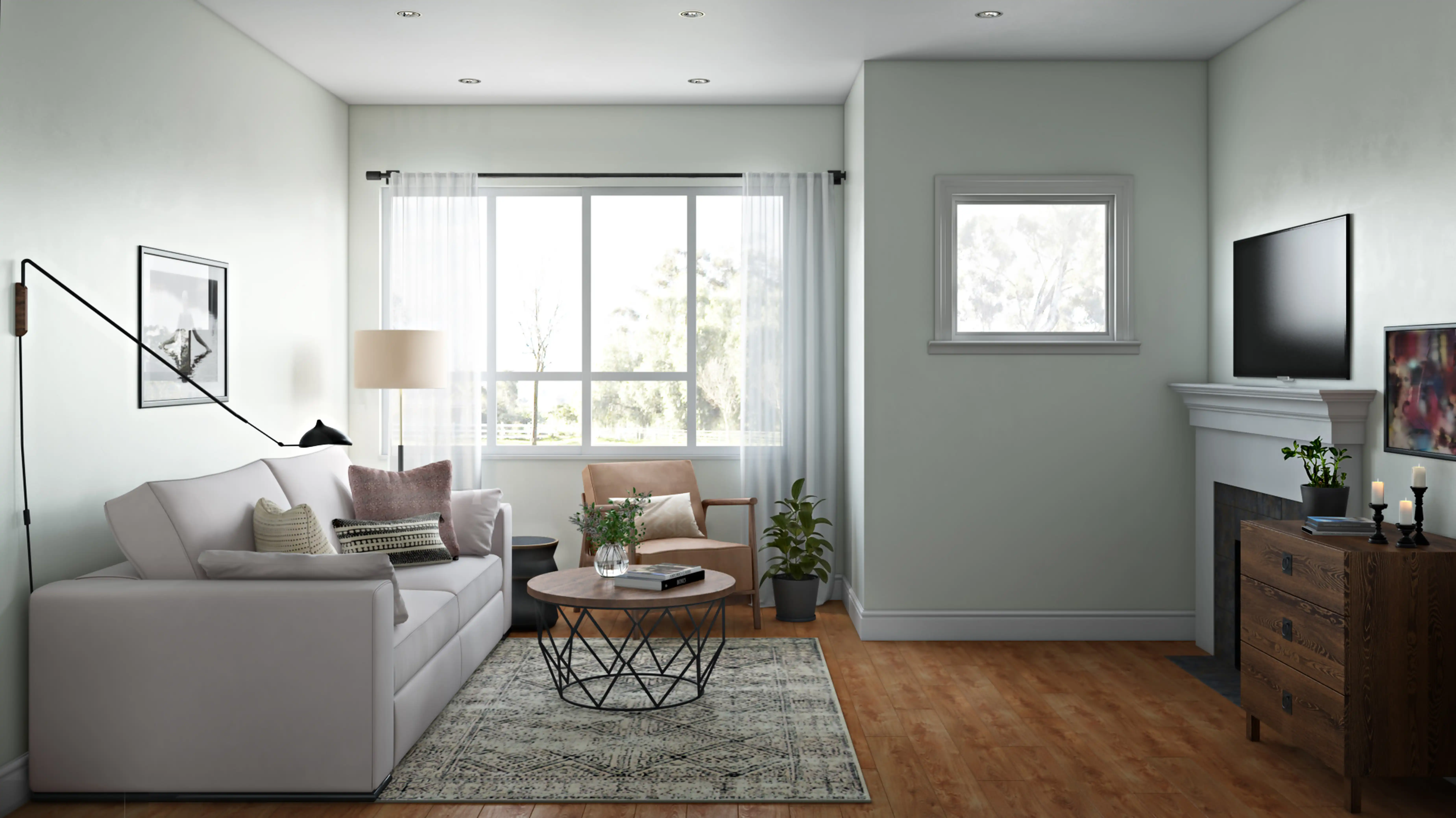 To brighten the design, Contemporary wall light fixtures were added to the room. Discover Lighting design inspiration on Havenly.