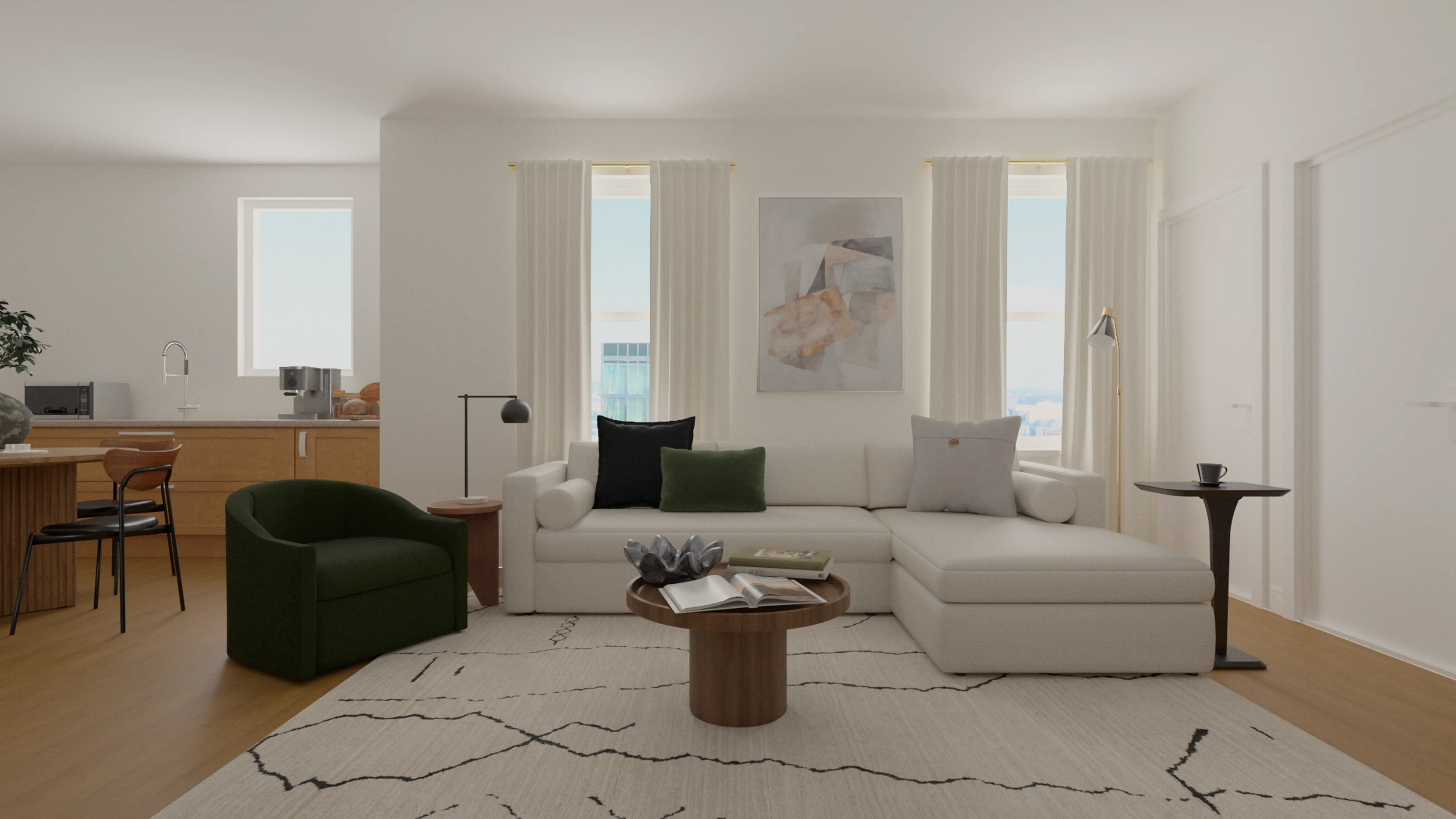 For this Living Room, Rocio selected kitchen, dining room chairs, and coffee tables from West Elm and Haldin. Discover Furniture design inspiration on Havenly.
