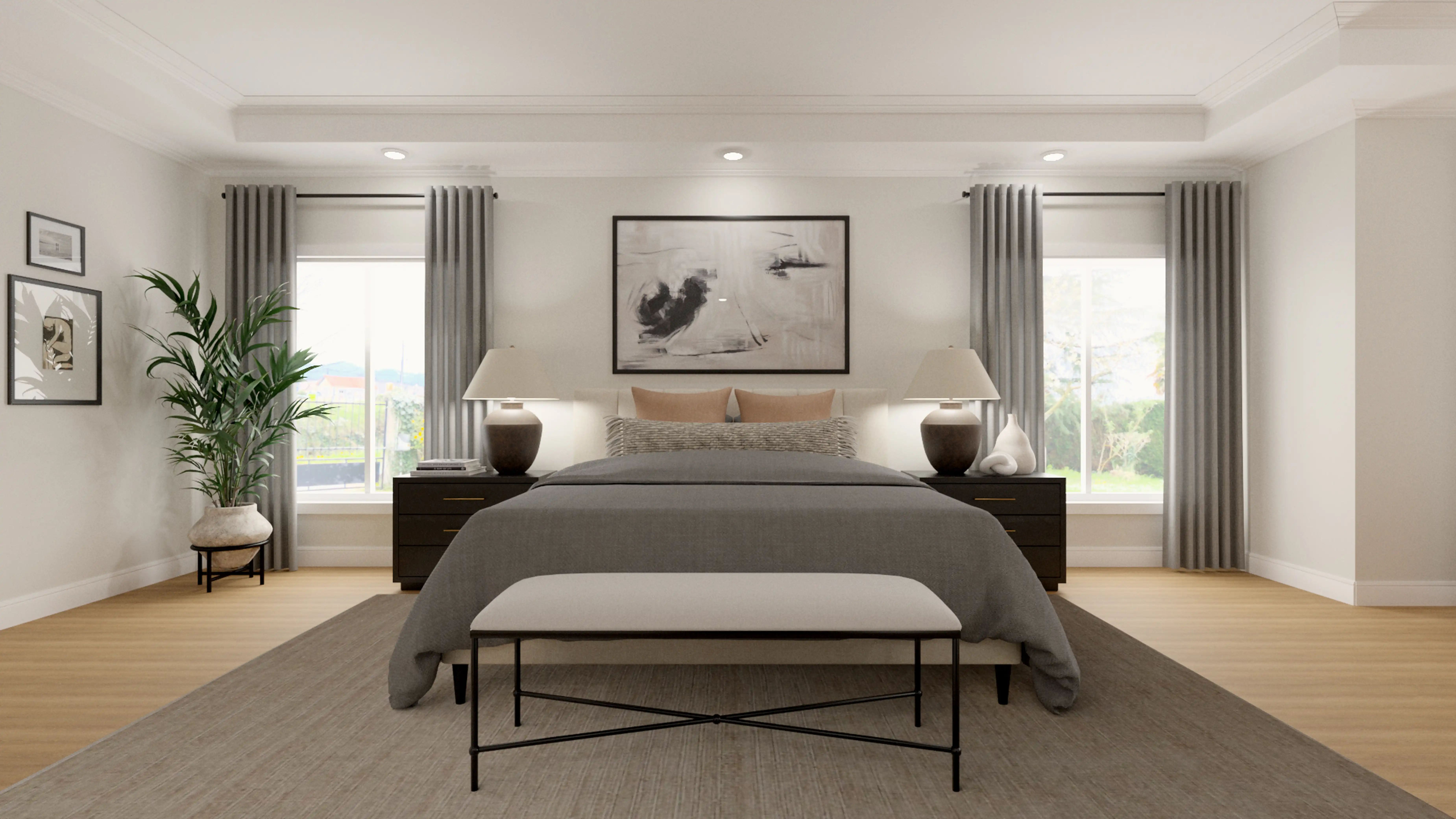 No room is complete without mirrors and picture frames! Mixing up metal and wood with black and cream color helps to add the finishing touches to the Bedroom. Discover Decor & Pillow design inspiration on Havenly.