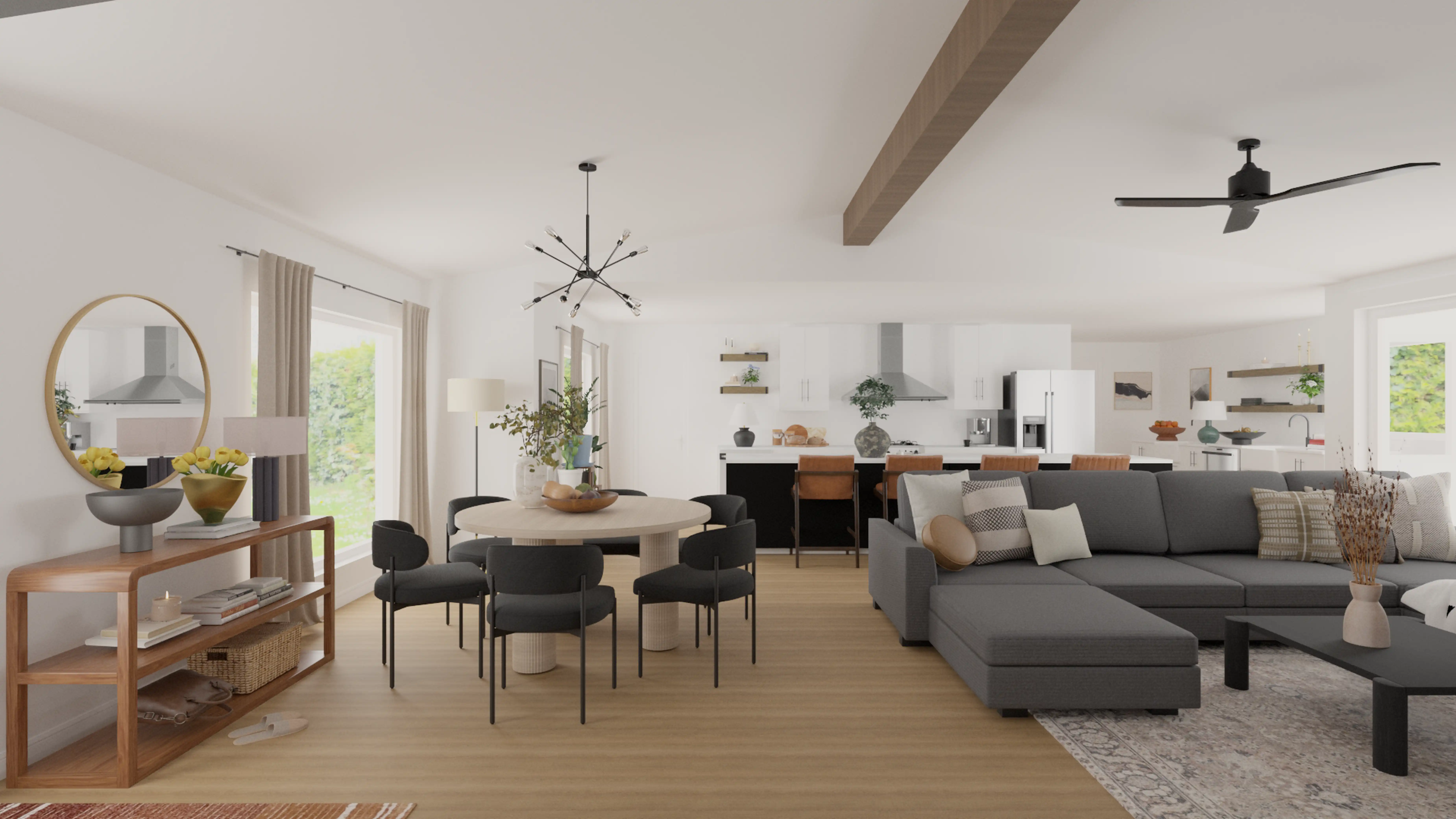 For this Living Room, Kait selected accent tables, kitchen, and dining room chairs from Four Hands and Interior Define. Discover Furniture design inspiration on Havenly.
