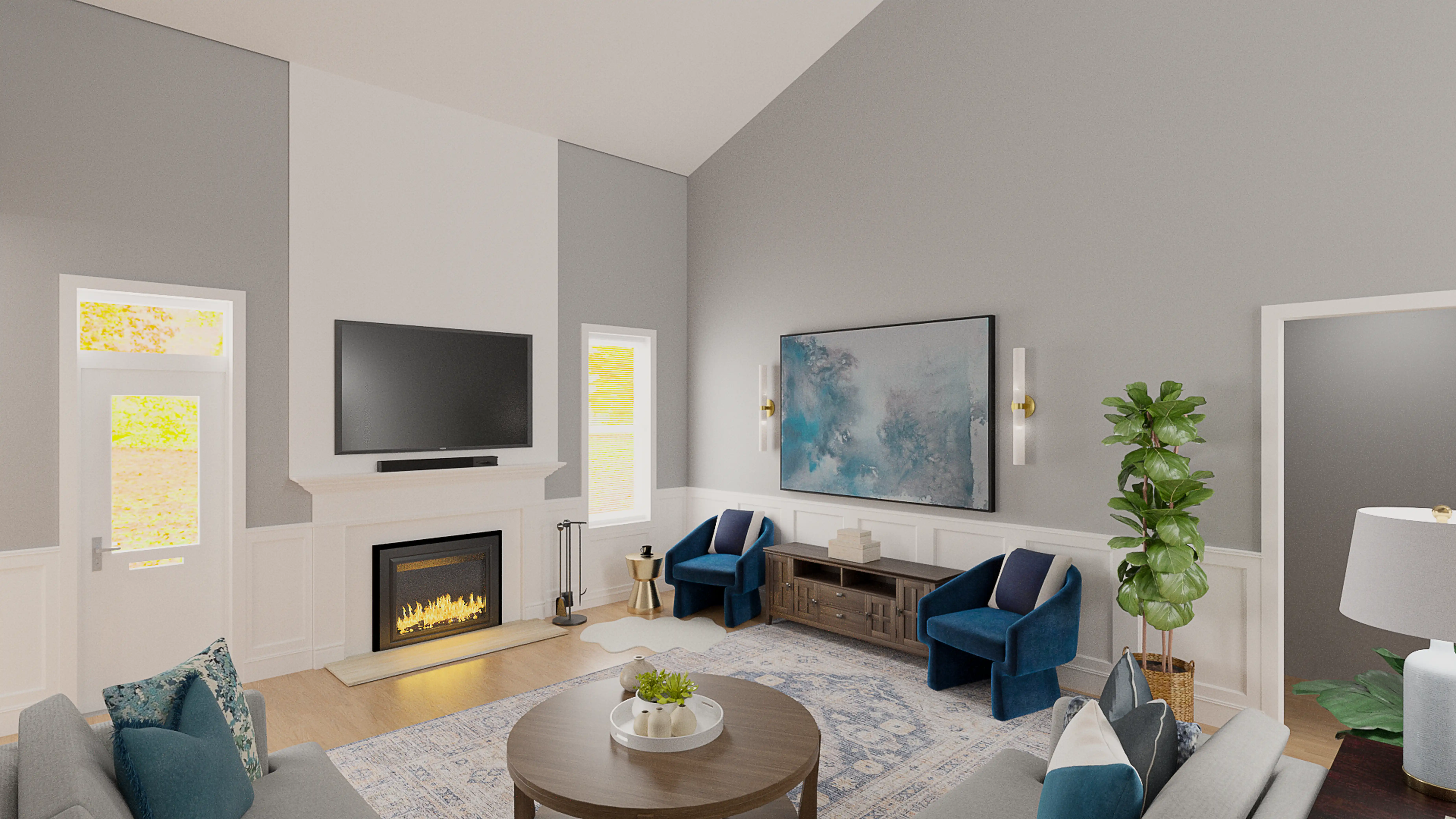 No room is complete without blankets and decorative trays! Mixing up acrylic and engineered wood with blue and white helps to add the finishing touches to the Living Room. Discover Decor & Pillow design inspiration on Havenly.