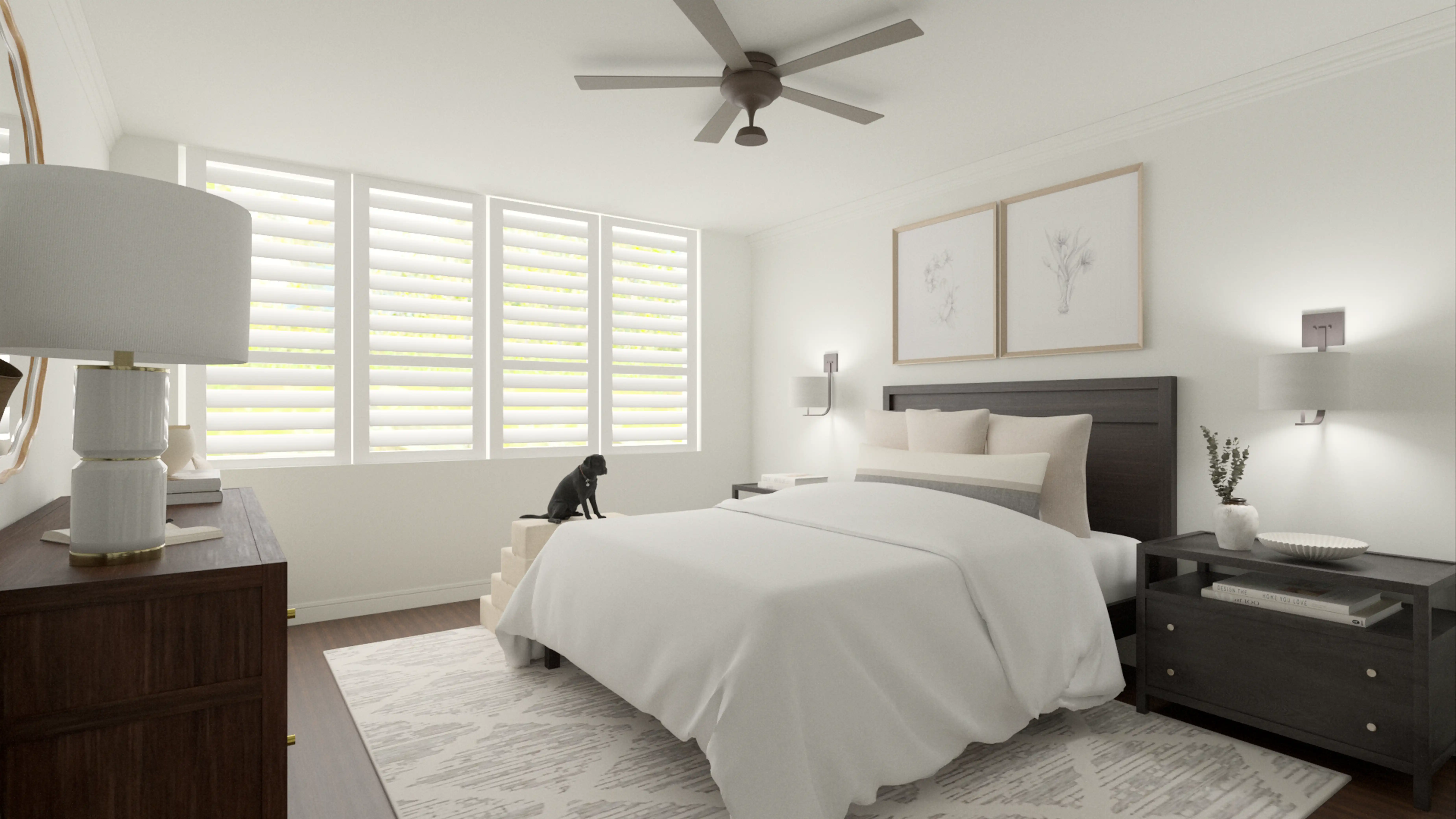 For this Bedroom, Ashley selected wall shelves, ledges, and benches from Pottery Barn and Skyline Furniture. Discover Furniture design inspiration on Havenly.