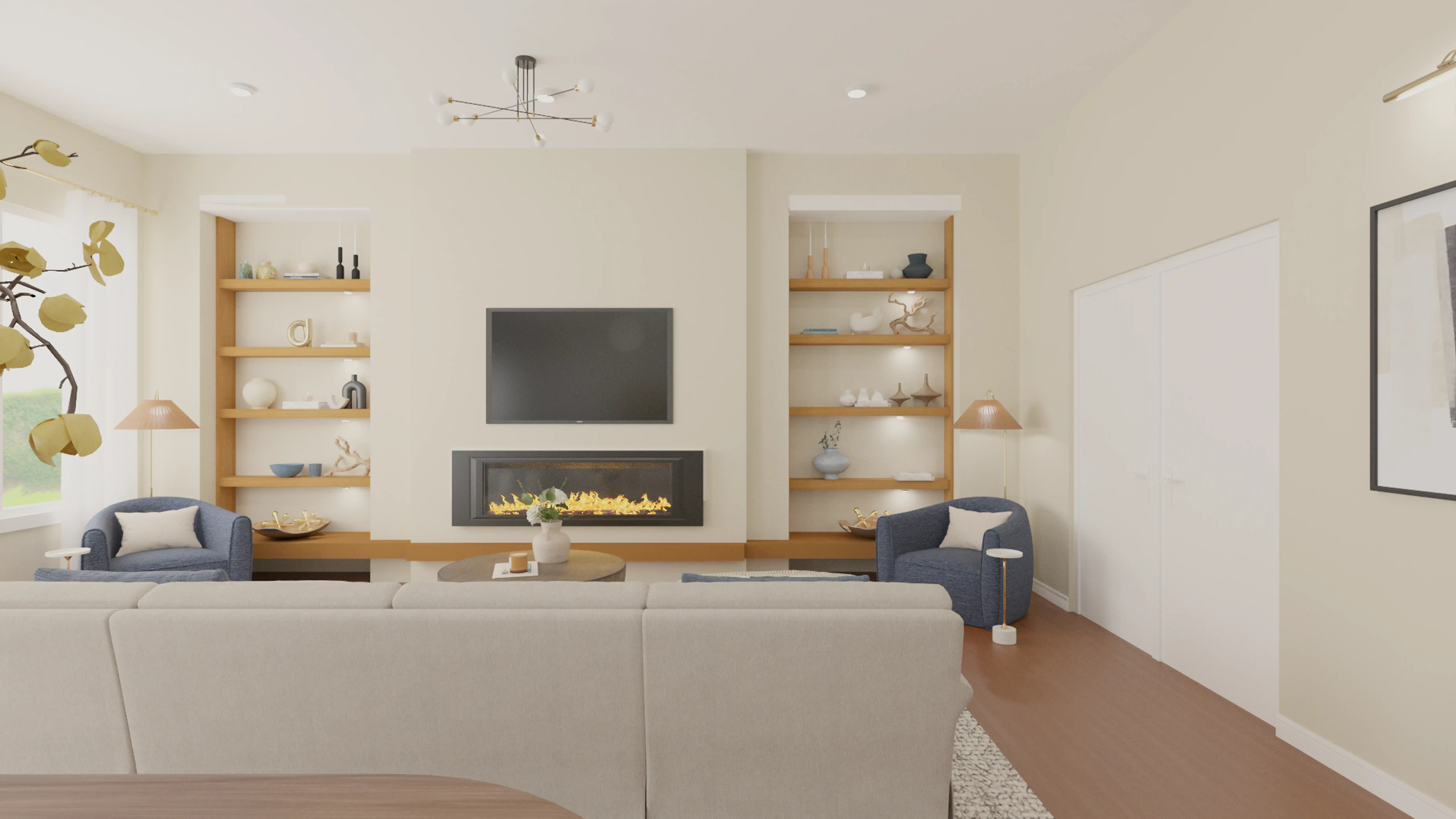 No room is complete without figurines and artificial flora! Mixing up natural grapewood and faux branch with natural and yellow helps to add the finishing touches to the Living Room. Discover Decor & Pillow design inspiration on Havenly.