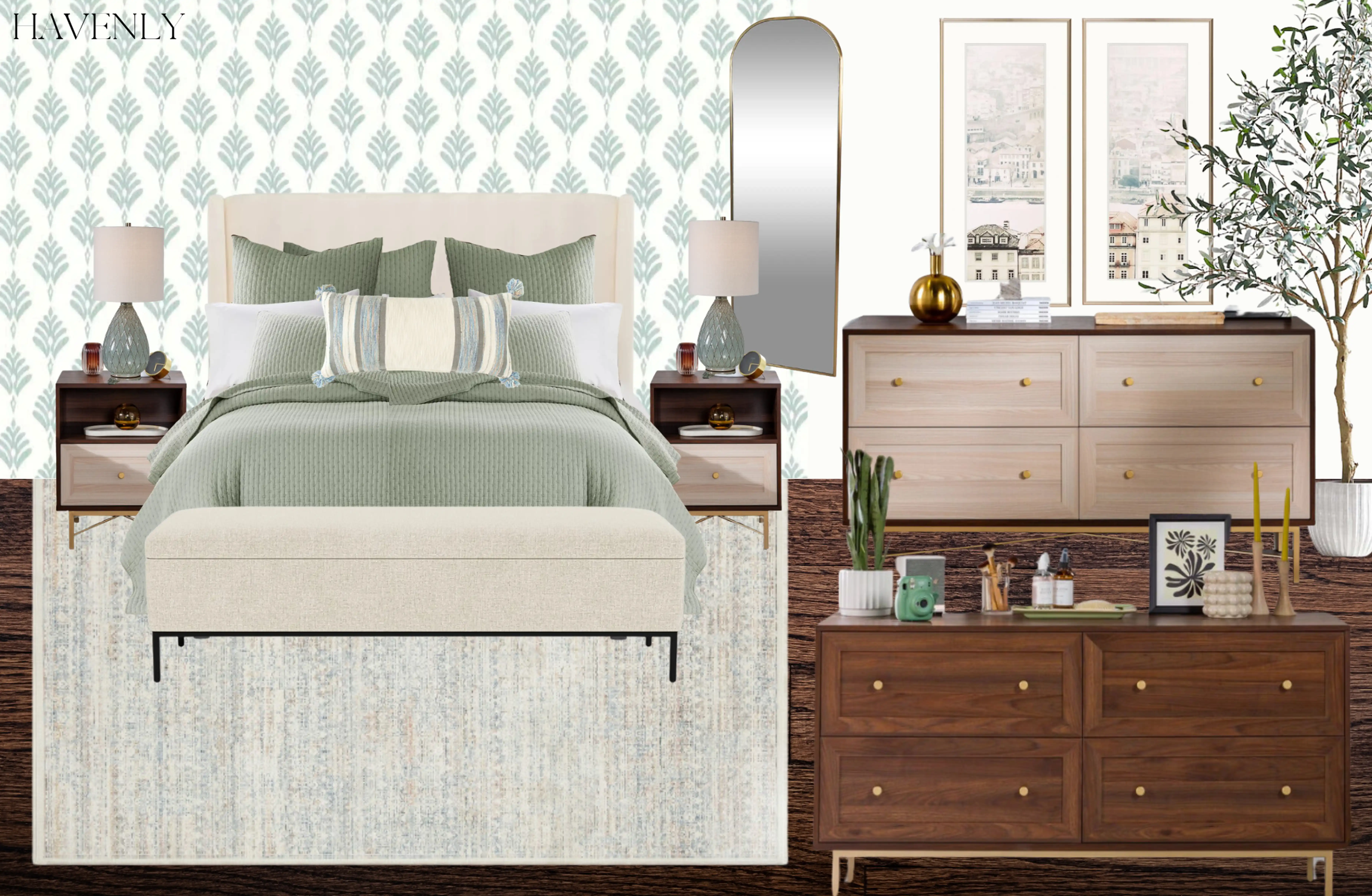 For this Bedroom, Sydney selected dressers and ottomans from Walker Edison and Interior Define. Discover Furniture design inspiration on Havenly.