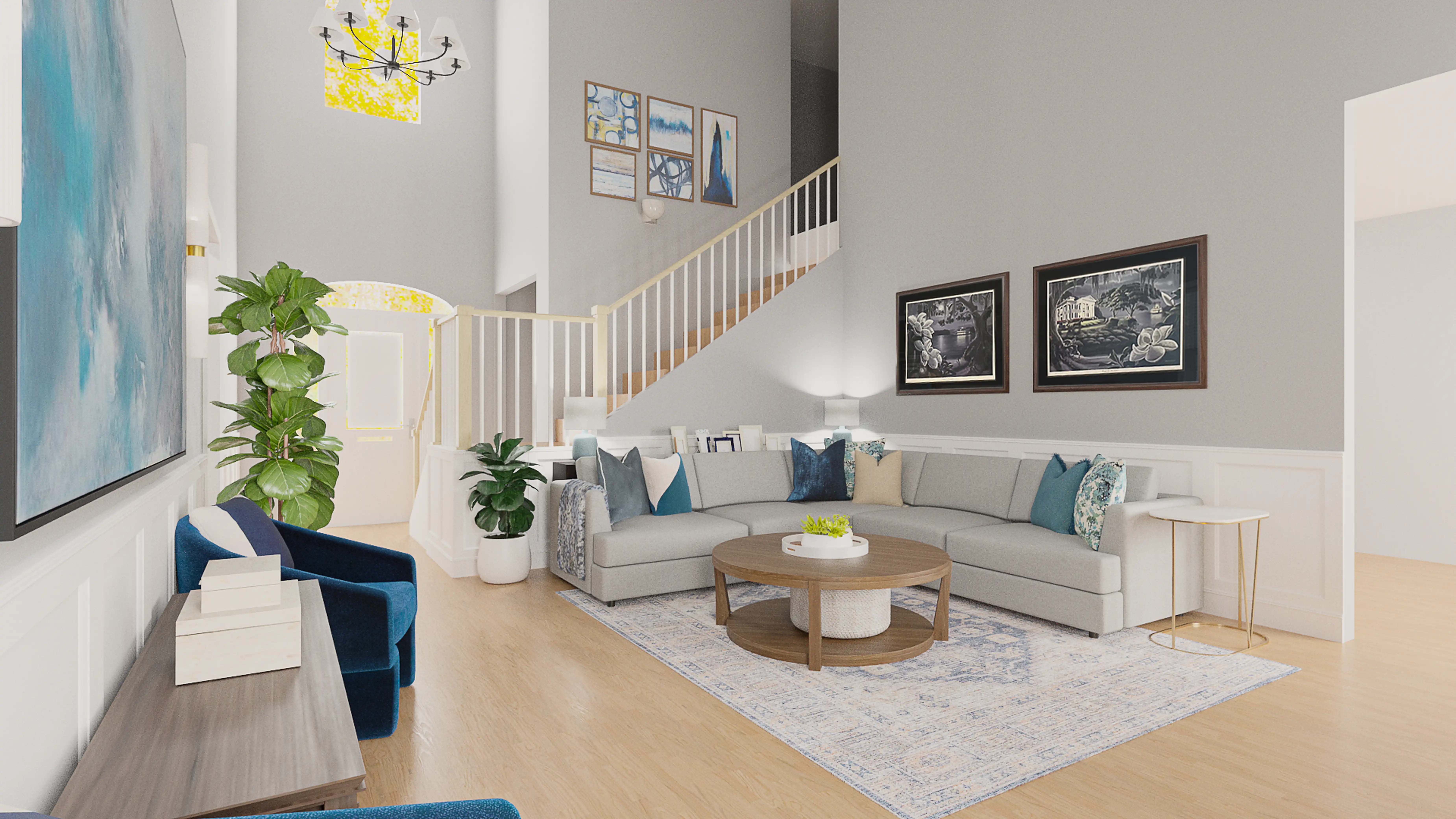 No room is complete without blankets and decorative trays! Mixing up acrylic and engineered wood with blue and white helps to add the finishing touches to the Living Room. Discover Decor & Pillow design inspiration on Havenly.
