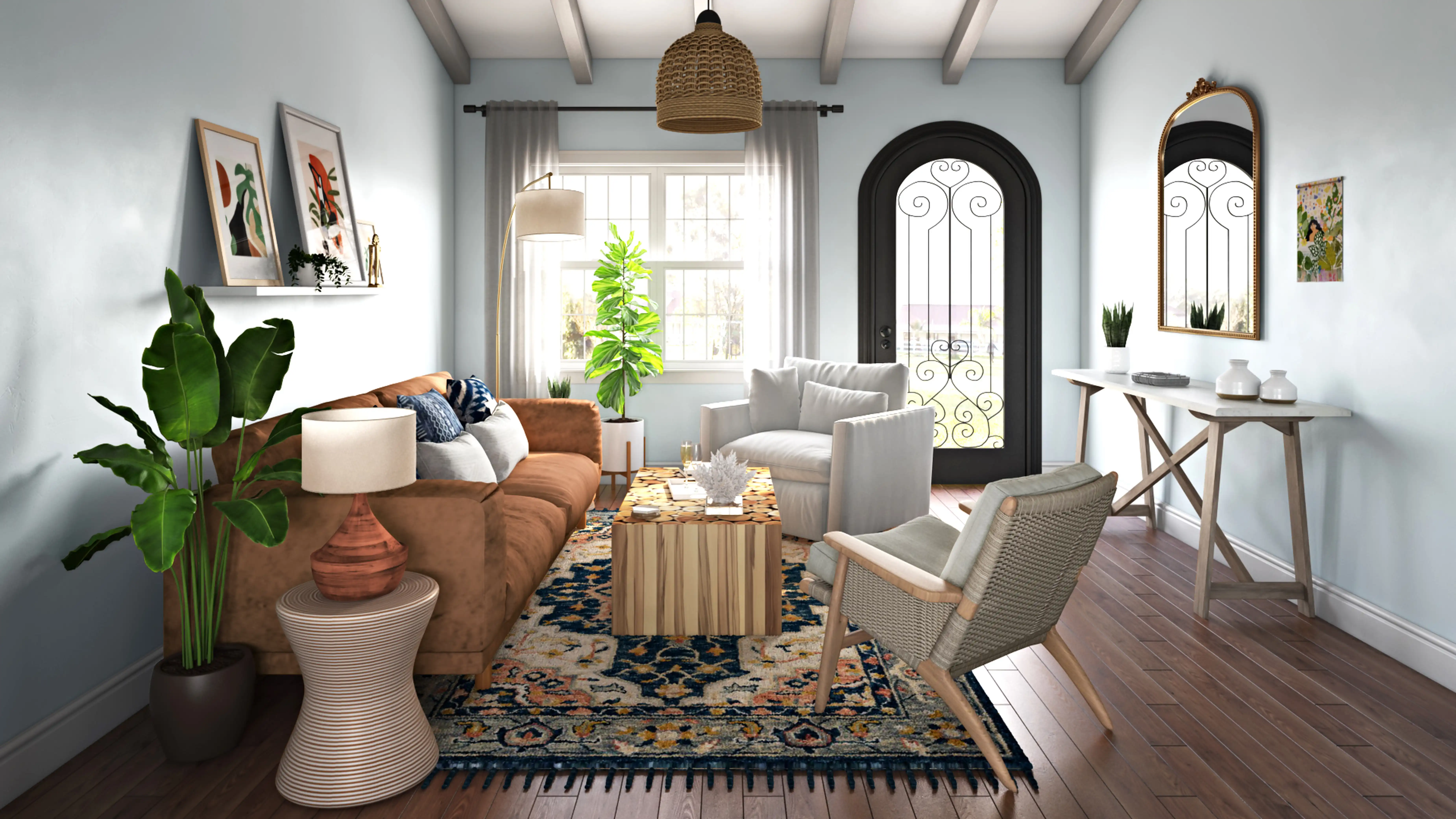 To brighten the design, Eclectic ceiling light fixtures and lamps were added to the room. Discover Lighting design inspiration on Havenly.