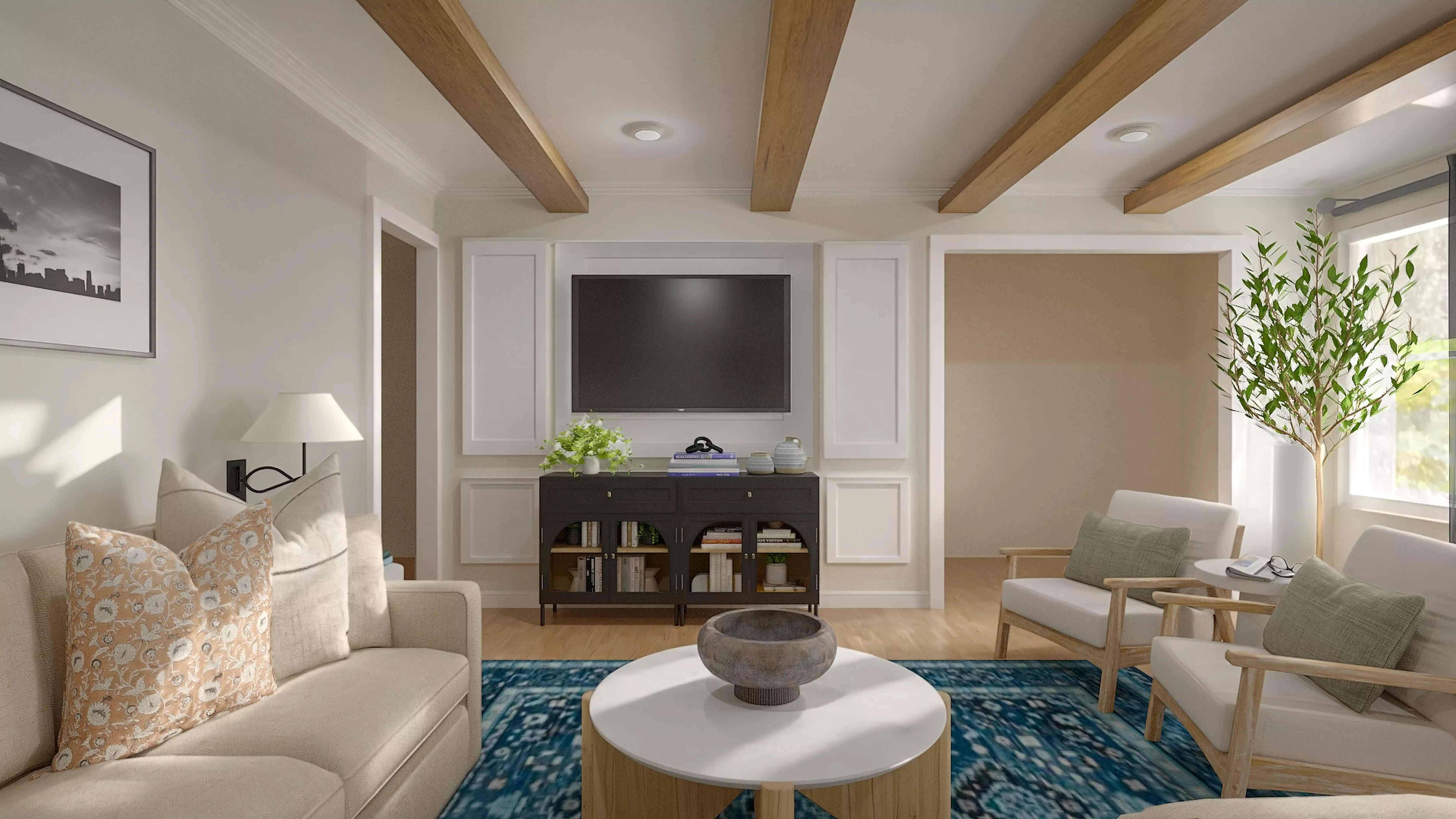 For this room, Sandra selected ottomans and coffee tables from Lulu, Georgia, and West Elm. Discover Furniture design inspiration on Havenly.