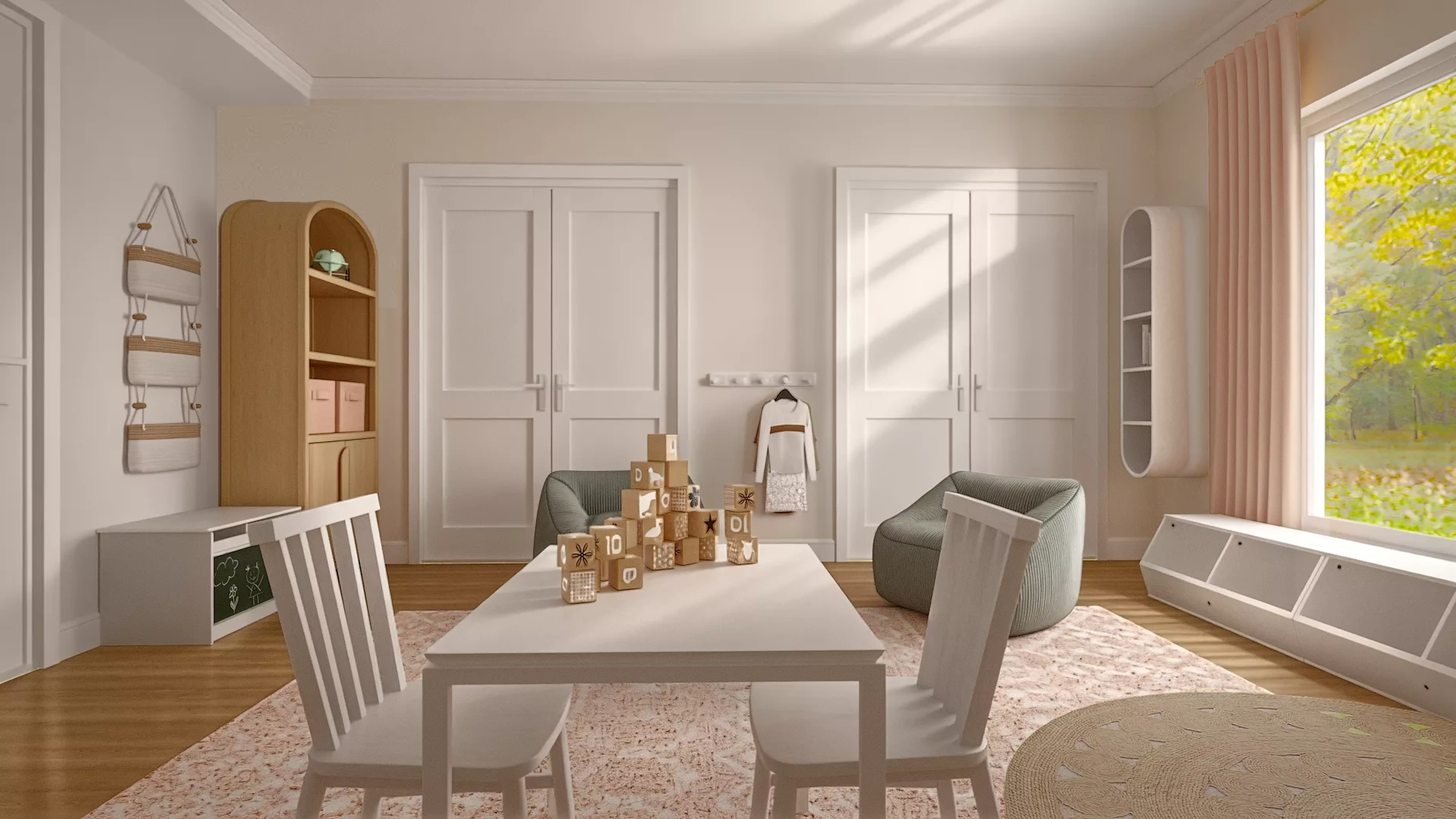 For this room, Fendy selected wall shelves, ledges, and chairs from Crate, Kids, and Wayfair. Discover Furniture design inspiration on Havenly.