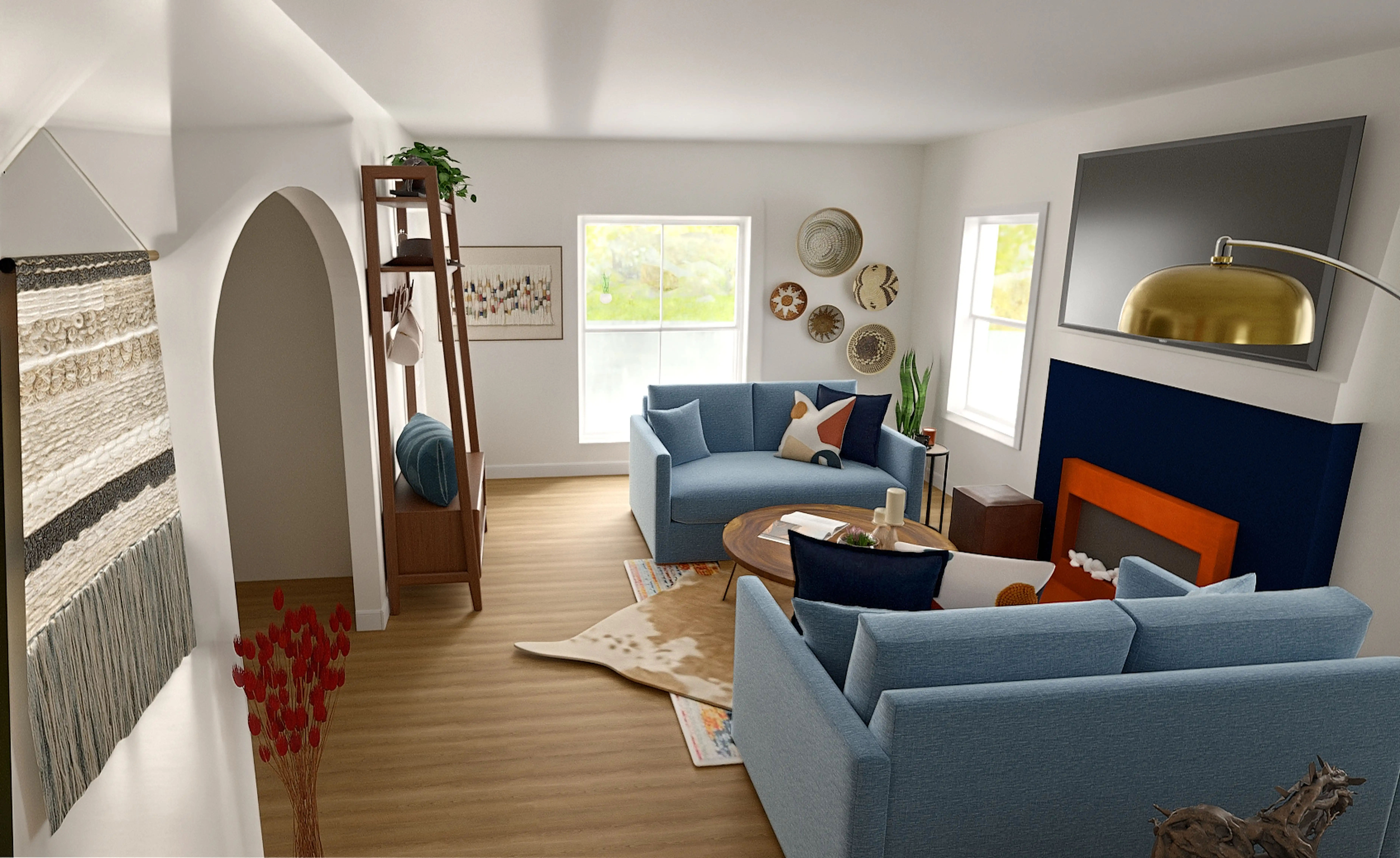 For this Living Room, Erika selected sofas, media storage cabinets, and racks from Interior Define and Burrow. Discover Furniture design inspiration on Havenly.