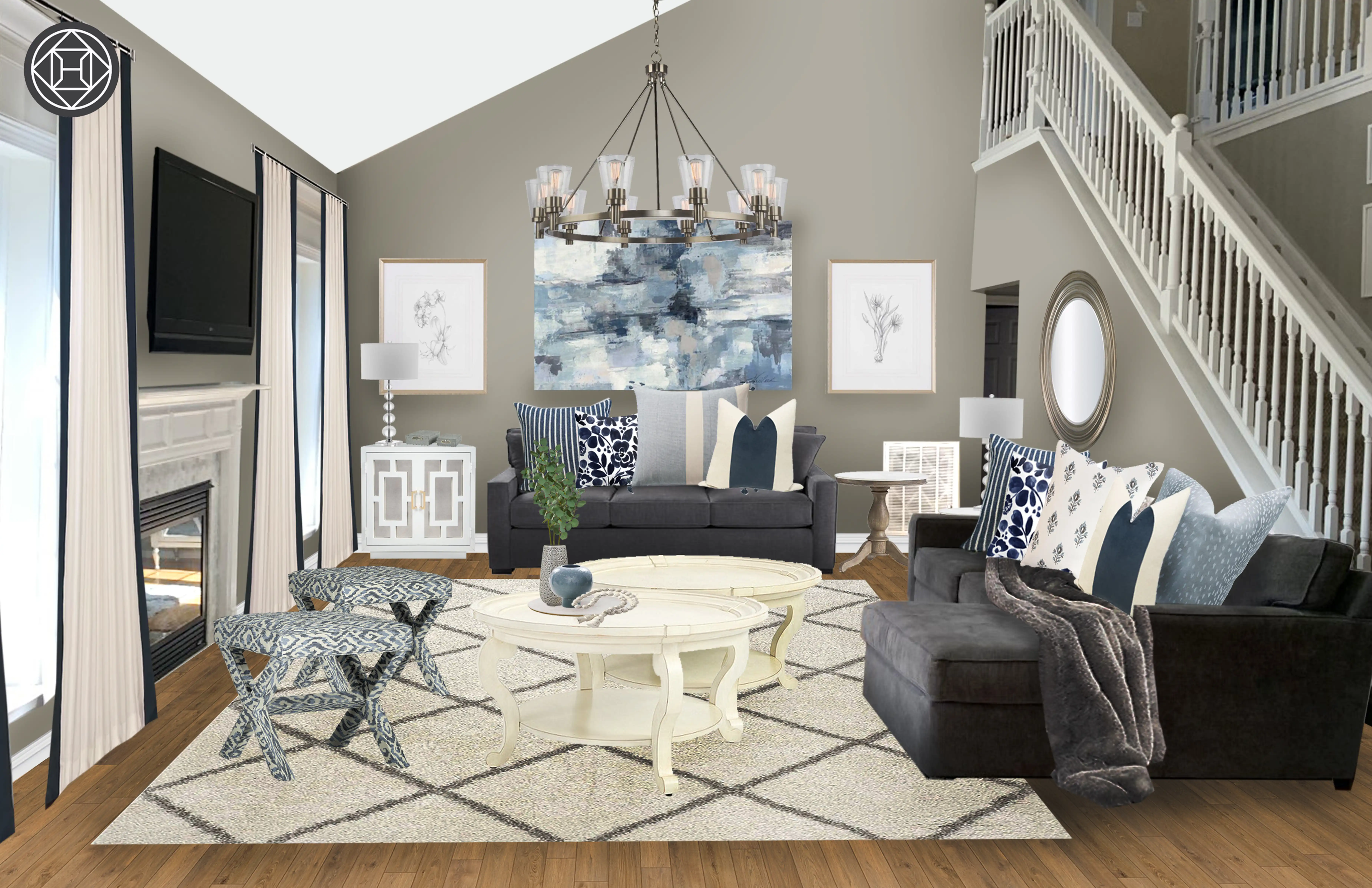 To brighten the design, Coastal lamps and chandeliers were added to the room. Discover Lighting design inspiration on Havenly.