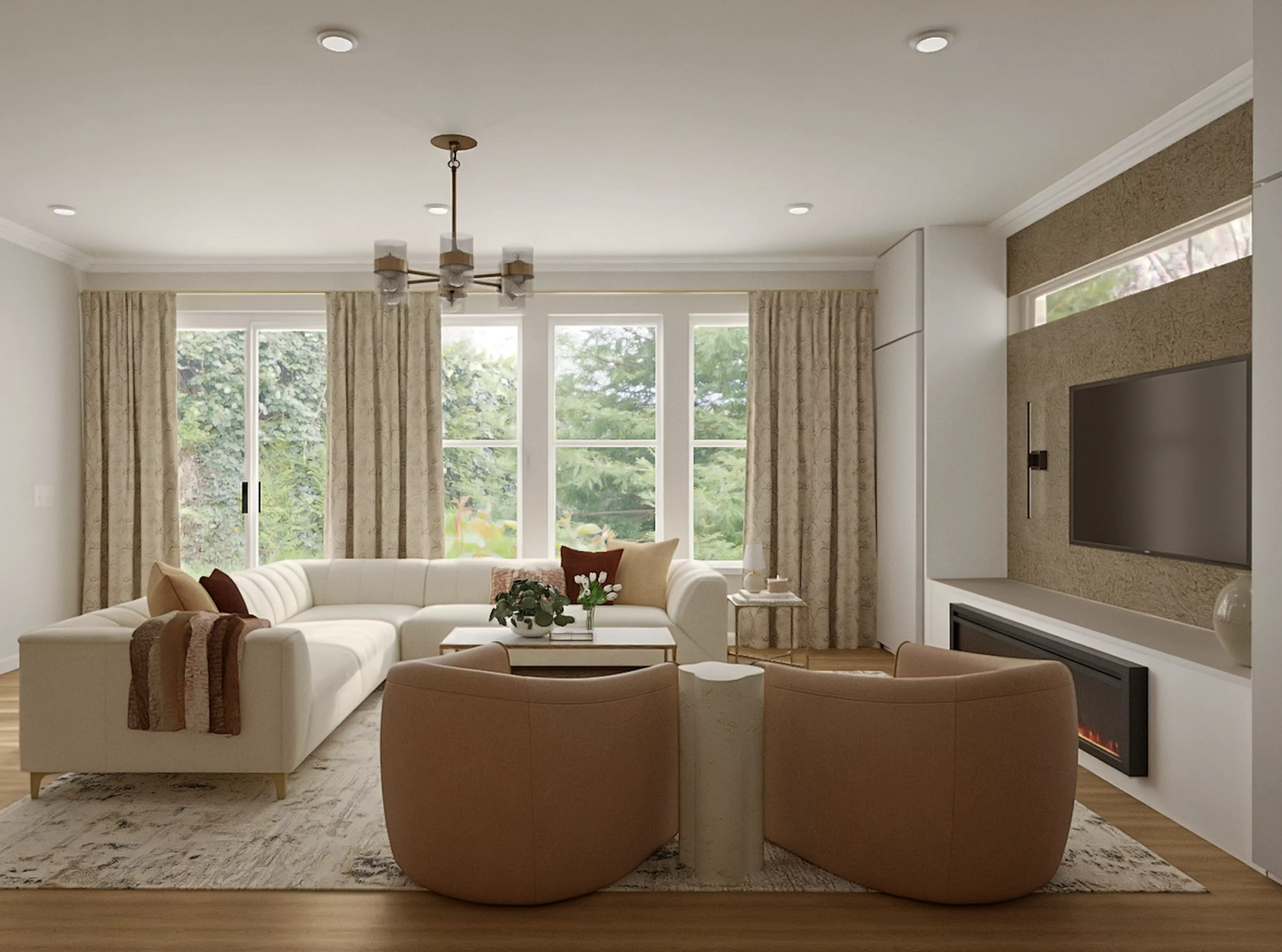 To brighten the design, modern chandeliers and lamps were added to the room. Discover Lighting design inspiration on Havenly.