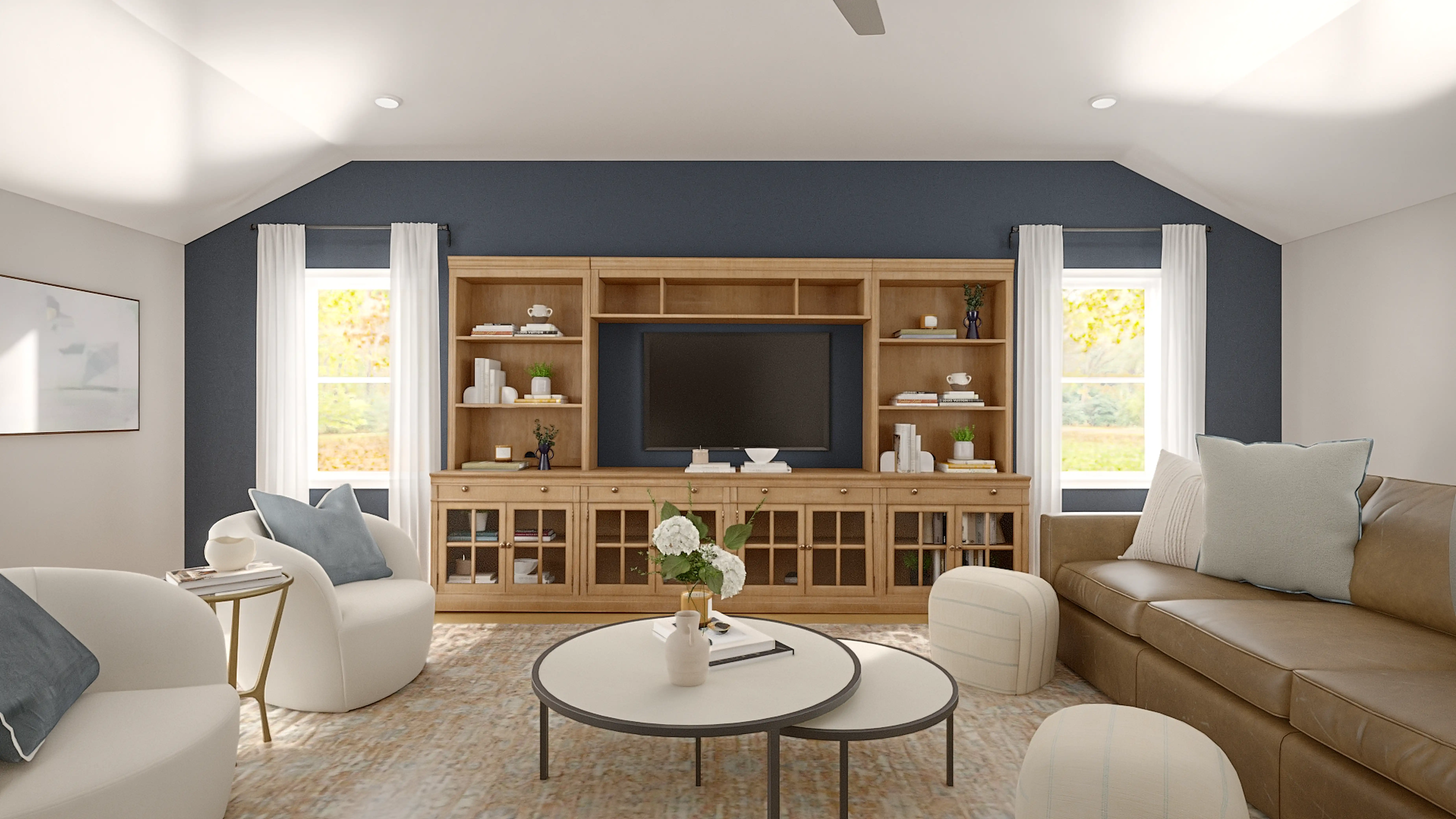 No room is complete without throw pillows, curtains, and drapes! Mixing up 100% cotton, 100% cotton, and linen with cream, navy, bright blue, and ivory helps to add the finishing touches to the Living Room. Discover Decor & Pillow design inspiration on Havenly.