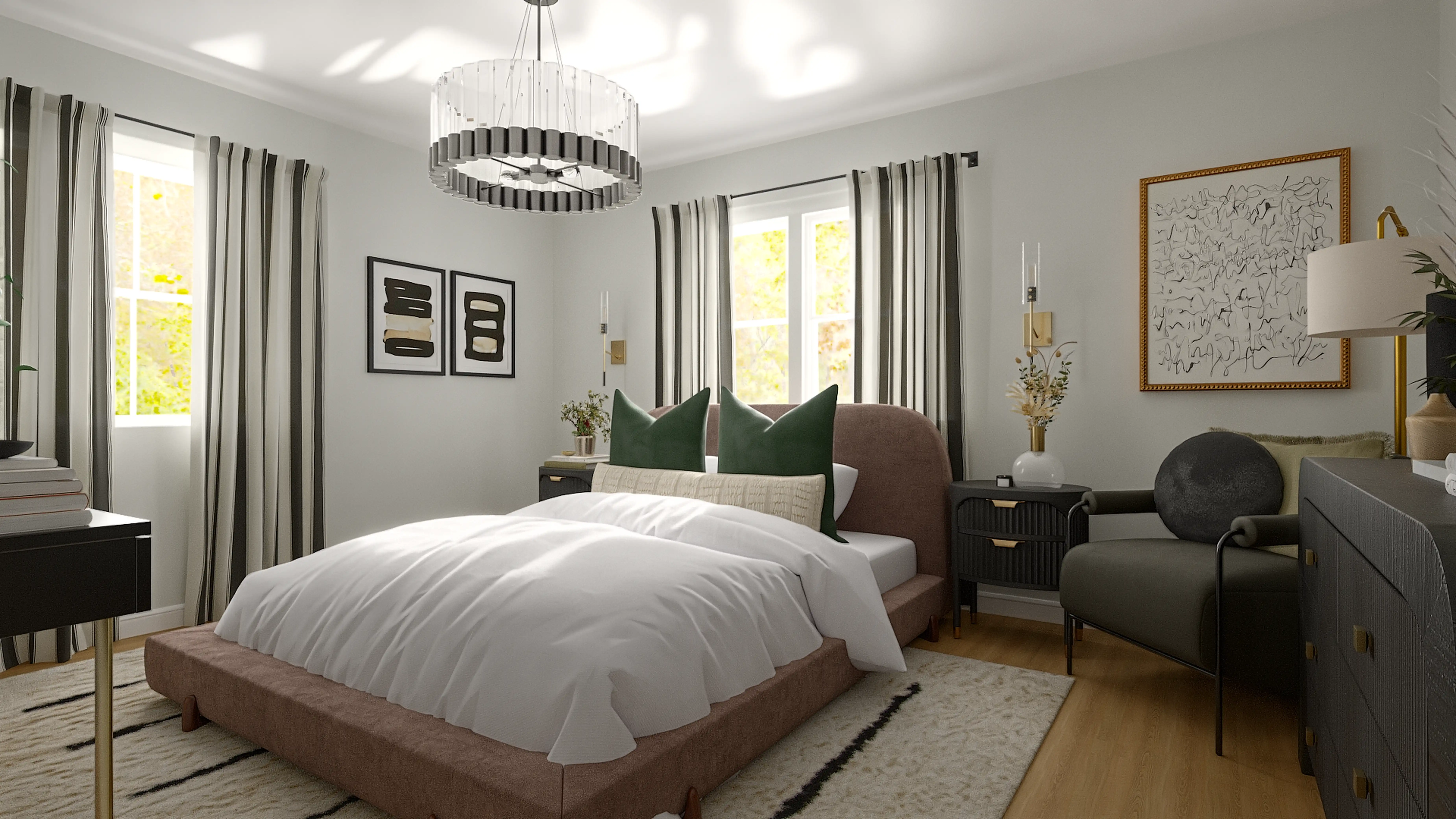 No room is complete without vases and throw pillows! Mixing up glass, brass, and velvet with gold, clear, and green helps to add the finishing touches to the Bedroom. Discover Decor & Pillow design inspiration on Havenly.
