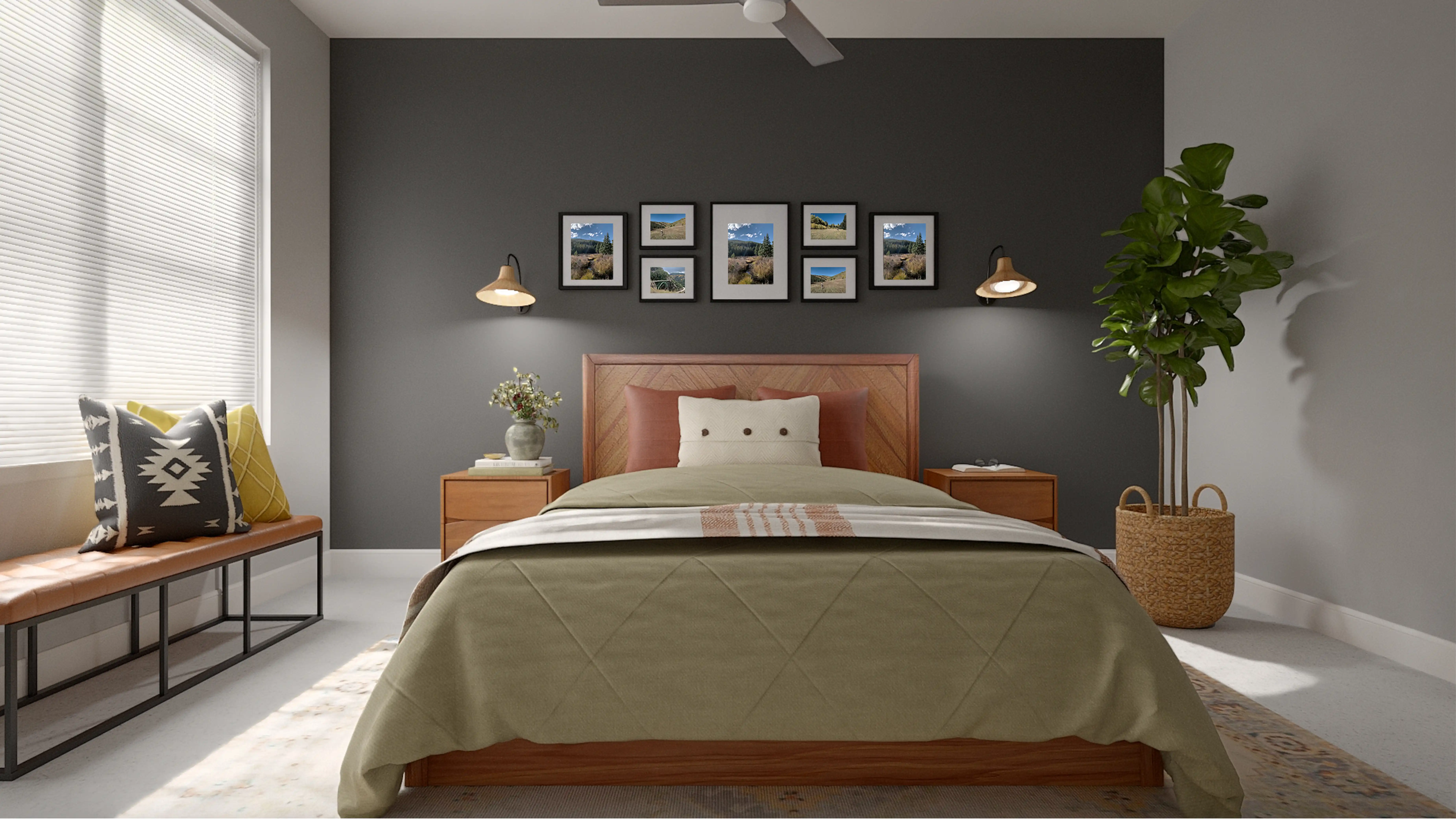 For this Bedroom, Valeria selected bookcases, standing shelves, and nightstands from Wayfair, Crate, and Barrel. Discover Furniture design inspiration on Havenly.