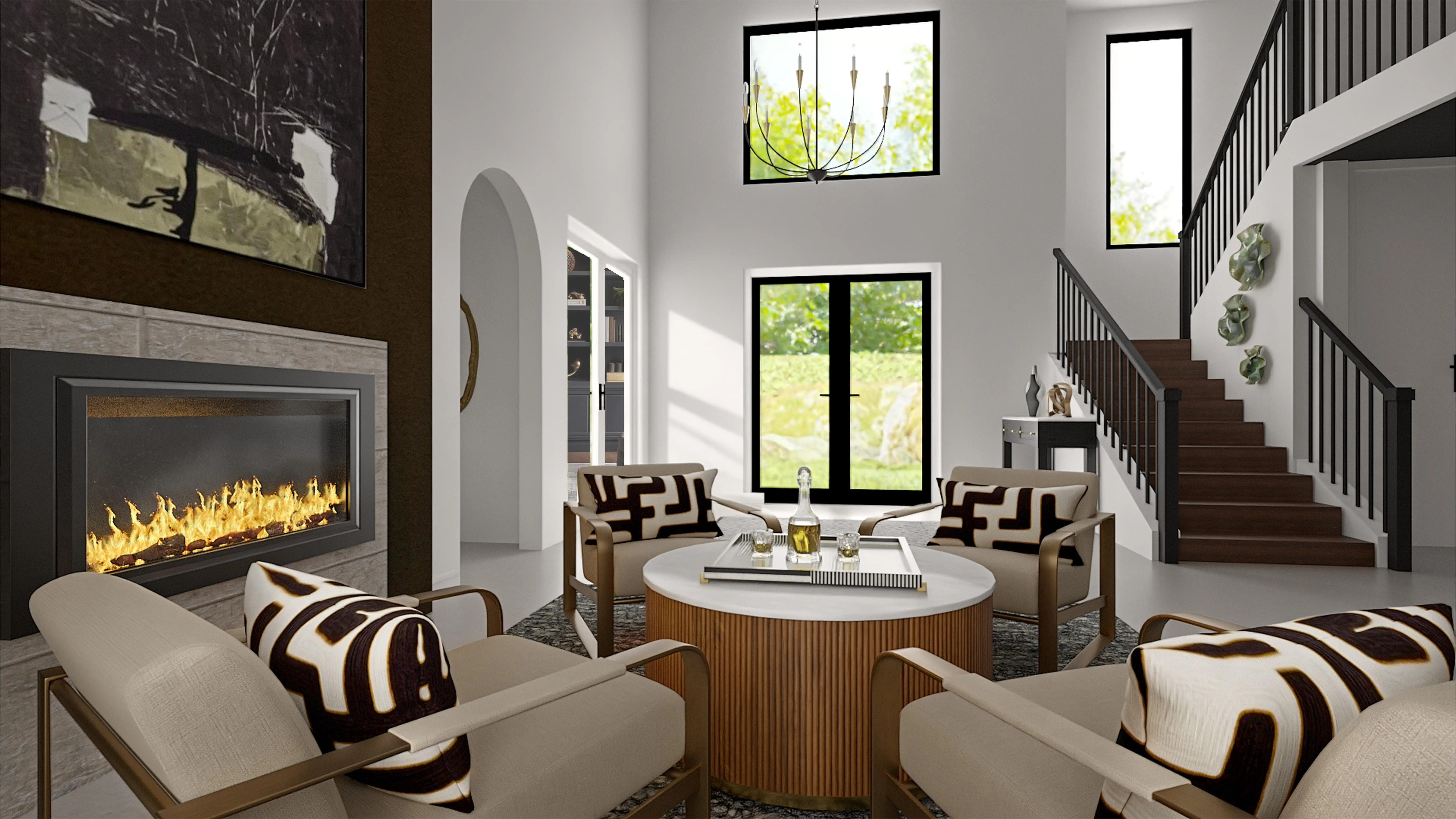 To brighten the design, Modern chandeliers were added to the room. Discover Lighting design inspiration on Havenly.