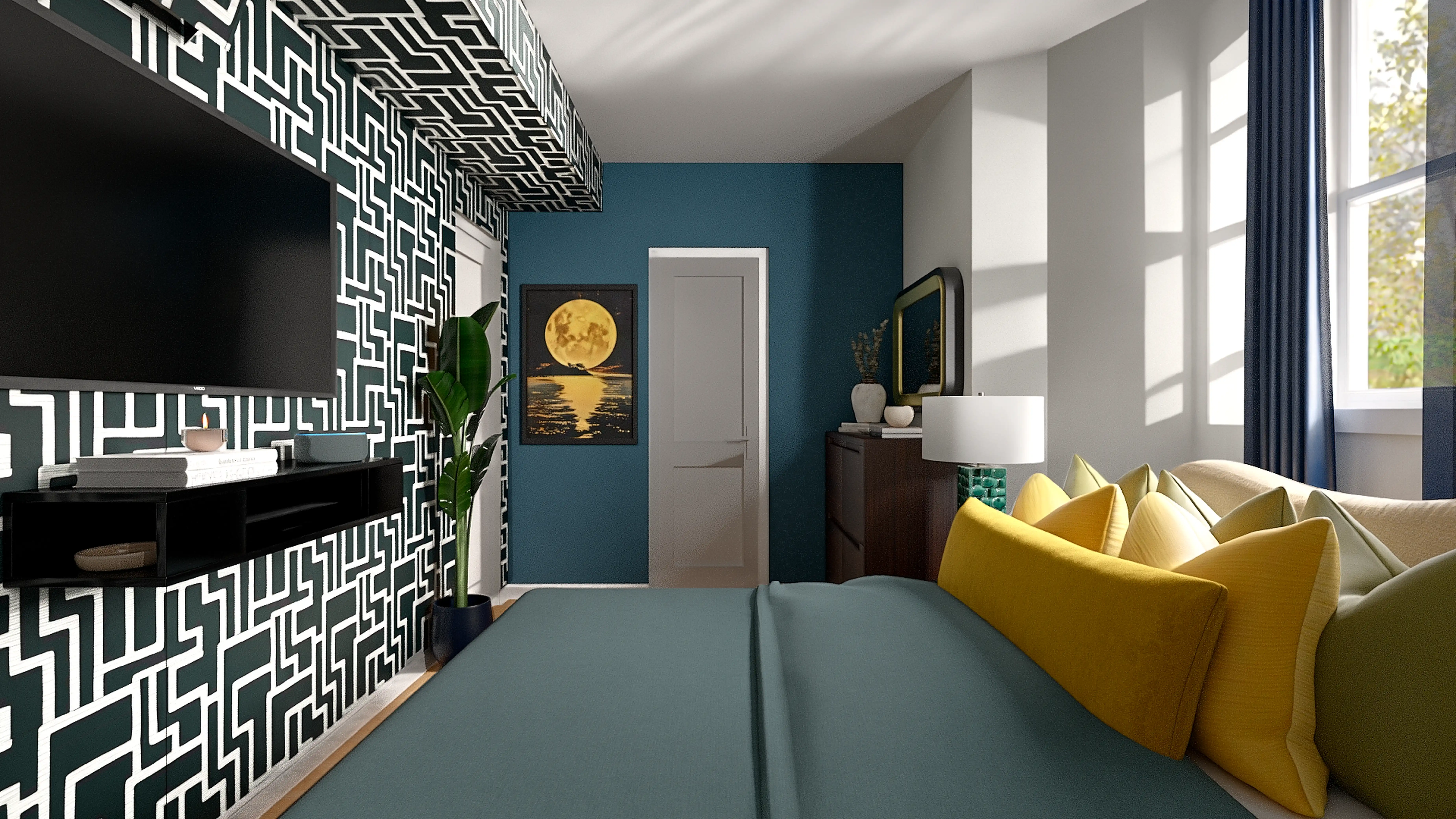 For this Bedroom, Bertha selected entertainment centers, tv stands, beds, and bed frames from Wayfair and CB2. Discover Furniture design inspiration on Havenly.