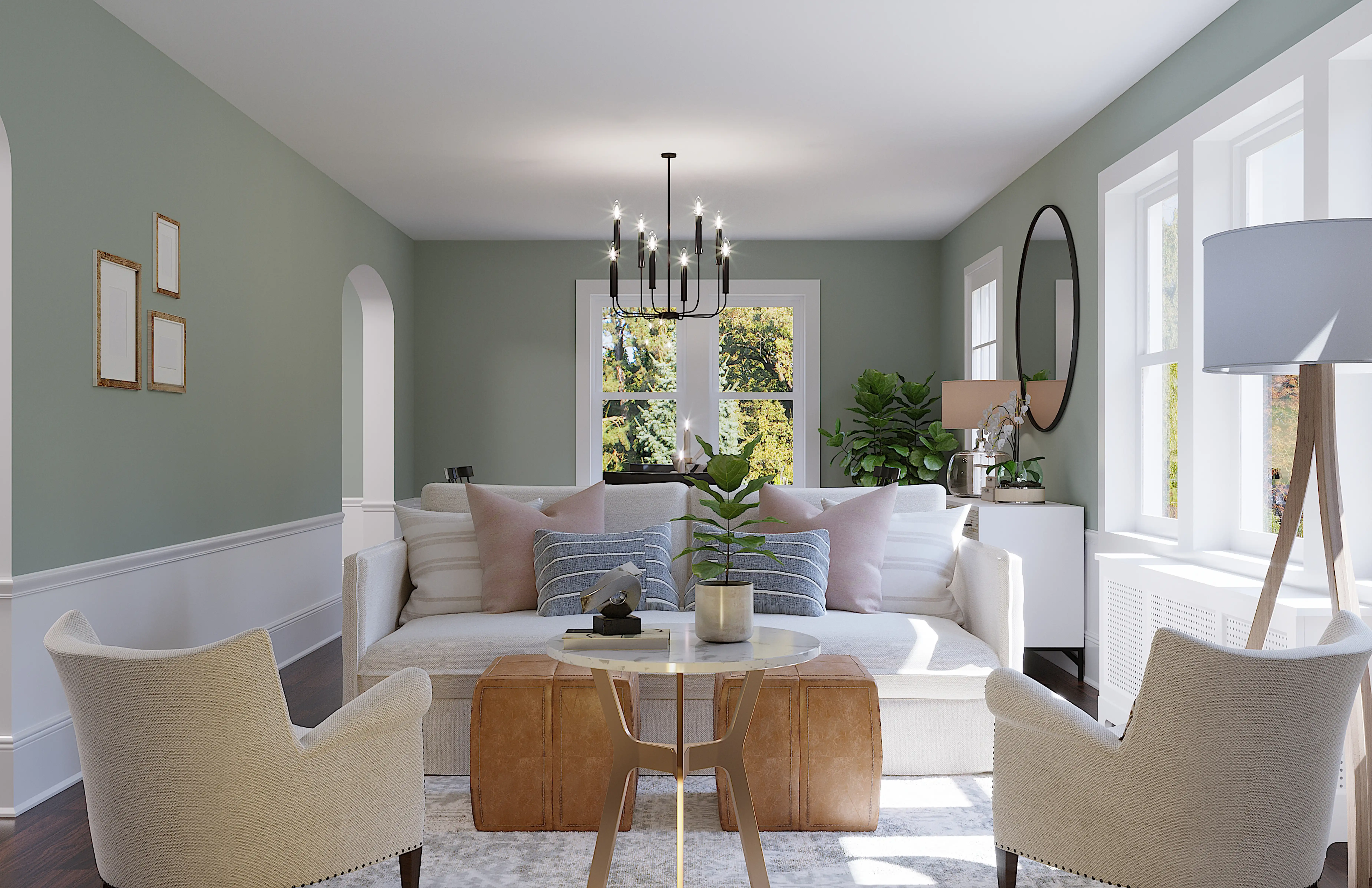 To brighten the design, Transitional chandeliers and lamps were added to the room. Discover Lighting design inspiration on Havenly.